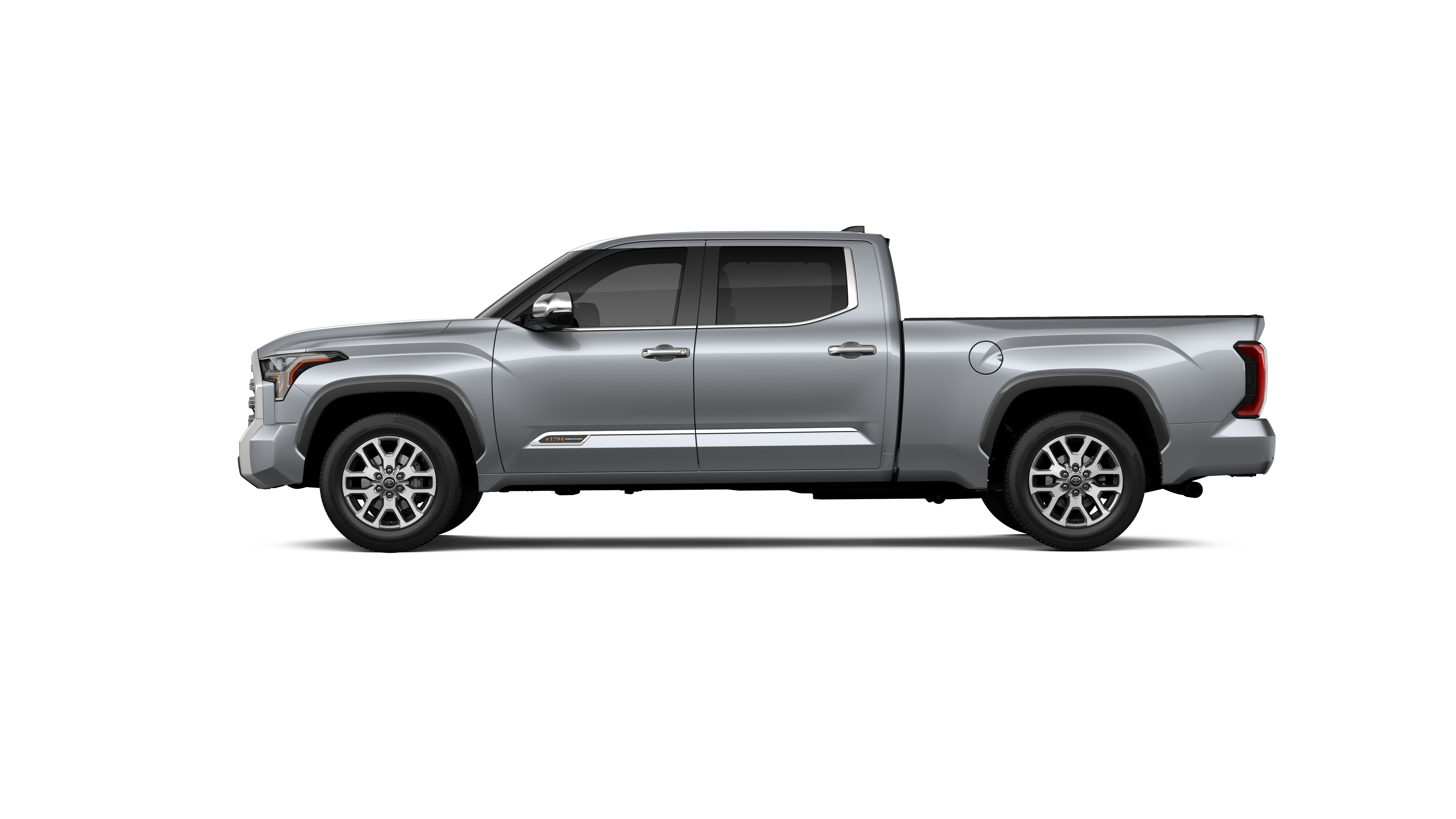 2026 Toyota Tundra 1794 Celestial Silver Metallic 4WD 10-Speed Automatic 3.4L V610-Way Power Adjustable Heated and Ventilated Front Seats, 12 Speakers, 3.31 Axle Ratio, 4-Wheel Disc Brakes, ABS brakes, Air Conditioning, Alloy wheels, AM/FM radio: SiriusXM, Apple CarPlay/Android Auto, Auto High-beam Headlights, Auto-dimming door mirrors, Auto-dimming Rear-View mirror, Automatic temperature control, Brake assist, Bumpers: body-color, Chrome Exhaust Tail Pipe & Diffuser, Compass, Delay-off headlights, Driver door bin, Driver vanity mirror, Dual front impact airbags, Dual front side impact airbags, Electronic Stability Control, Emergency communication system: Safety Connect (up to 10-year trial subscription), Exterior Parking Camera Rear, Front anti-roll bar, Front Bucket Seats, Front Center Armrest, Front dual zone A/C, Front fog lights, Front reading lights, Front wheel independent suspension, Fully automatic headlights, Garage door transmitter: HomeLink, Heated door mirrors, Heated front seats, Heated rear seats, Heated steering wheel, Illuminated entry, Knee airbag, Leather Shift Knob, Leather steering wheel, Low tire pressure warning, Memory seat, Navigation system: Drive Connect Cloud Navigation (1-year trial subscription), Occupant sensing airbag, Outside temperature display, Overhead airbag, Overhead console, Panic alarm, Passenger door bin, Passenger vanity mirror, Power door mirrors, Power driver seat, Power moonroof, Power passenger seat, Power steering, Power windows, Premium Leather Seat Trim, Radio data system, Radio: Premium Audio, Rain sensing wipers, Rear reading lights, Rear seat center armrest, Rear step bumper, Rear window defroster, Remote keyless entry, Safety Connect, Security system, Speed control, Speed-sensing steering, Speed-Sensitive Wipers, Split folding rear seat, Steering wheel memory, Steering wheel mounted audio controls, Tachometer, Telescoping steering wheel, Tilt steering wheel, Traction control, Trip computer, Turn signal indicator mirrors, Variably intermittent wipers, Ventilated front seats, Ventilated rear seats, Voltmeter, Wheels: 20 Machined Finish Alloy.