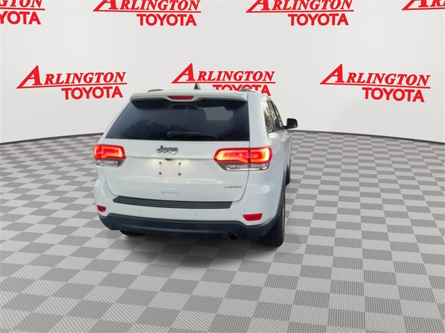 Odometer is 37065 miles below market average! Recent Arrival!BACKUP CAMERA, BLUETOOTH HANDS FREE, POWER SEATS, LOCAL TRADE IN, LOW MILES, PUSH BUTTON START, CRUISE CONTROL, NON SMOKER, Grand Cherokee Laredo, 4D Sport Utility, 3.6L V6 24V VVT, 8-Speed Automatic, RWD, Bright White Clearcoat, Black Cloth, ABS brakes, Electronic Stability Control, Four wheel independent suspension, Front dual zone A/C, Fully automatic headlights, Low tire pressure warning, Steering wheel mounted audio controls, 17" x 8.0" Aluminum Wheels, 3.27 Rear Axle Ratio, 4-Wheel Disc Brakes, 6 Speakers, Air Conditioning, Alloy wheels, AM/FM radio, Anti-whiplash front head restraints, Automatic temperature control, Brake assist, Bright Side Roof Rails, Bumpers: body-color, Cloth Low-Back Bucket Seats, Compass, Delay-off headlights, Driver door bin, Driver vanity mirror, Dual front impact airbags, Dual front side impact airbags, Eco Suspension I, For Details Visit DriveUconnect.com, Front anti-roll bar, Front Bucket Seats, Front Center Armrest w/Storage, Front fog lights, Front reading lights, Heated door mirrors, Illuminated entry, Knee airbag, Leather Shift Knob, Manufacturer's Statement of Origin, Occupant sensing airbag, Outside temperature display, Overhead airbag, Overhead console, Panic alarm, ParkSense Rear Park Assist System, ParkSense Rear Park Assist w/Stop, ParkView Rear Back-Up Camera, Passenger door bin, Passenger vanity mirror, Power 4-Way Driver Lumbar Adjust, Power 8-Way Driver/Manual Passenger Seat, Power door mirrors, Power steering, Power windows, Quick Order Package 23E, Radio data system, Radio: Uconnect 5.0, Rear anti-roll bar, Rear reading lights, Rear seat center armrest, Rear window defroster, Rear window wiper, Remote keyless entry, Speed control, Speed-Sensitive Wipers, Split folding rear seat, Spoiler, Tachometer, Telescoping steering wheel, Tilt steering wheel, Traction control, Trip computer, Variably intermittent wipers, Grand Cherokee Laredo, 4D Sport Utility, 3.6L V6 24V VVT, 8-Speed Automatic, RWD, Bright White Clearcoat, Black Cloth, ABS brakes, Electronic Stability Control, Four wheel independent suspension, Front dual zone A/C, Fully automatic headlights, Low tire pressure warning, Steering wheel mounted audio controls.CALL FOR AVAILABILITY AND EXTRA OPTIONS ARLINGTON TOYOTA 904-721-3000.