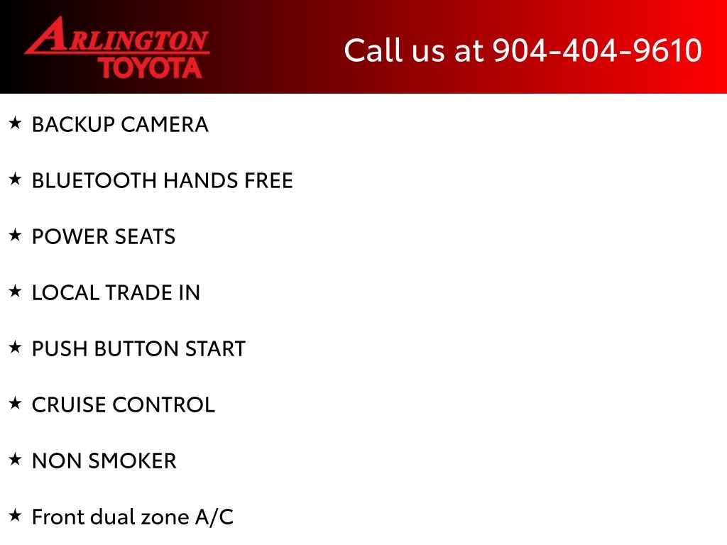 CALL FOR AVAILABILITY AND EXTRA OPTIONS ARLINGTON TOYOTA 904-721-3000.