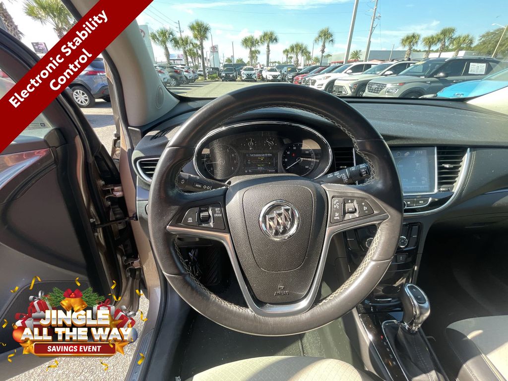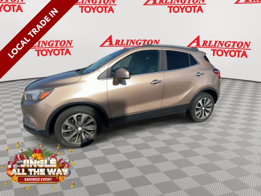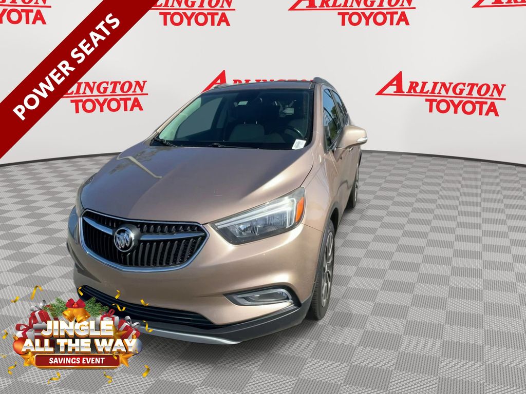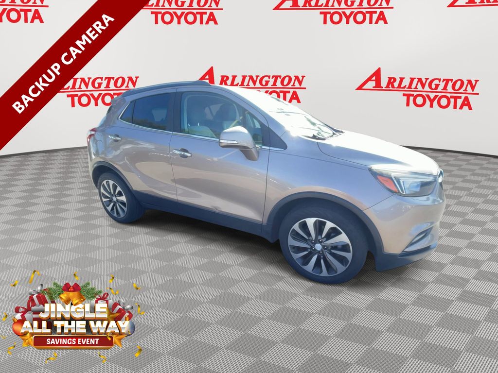 BACKUP CAMERA, BLUETOOTH HANDS FREE, POWER SEATS, LOCAL TRADE IN, PUSH BUTTON START, CRUISE CONTROL, NON SMOKER, Encore Preferred II, 4D Sport Utility, ECOTEC 1.4L I4 SMPI DOHC Turbocharged VVT, 6-Speed Automatic Electronic with Overdrive, FWD, Coppertino Metallic, Shale Cloth, ABS brakes, Electronic Stability Control, Front dual zone A/C, Fully automatic headlights, Low tire pressure warning, Remote Vehicle Starter System, Steering wheel mounted audio controls, 120-Volt Power Outlet, 18" Aluminum Wheels, 2-Way Manual Front Passenger Seat Adjuster, 3.53 Final Drive Axle Ratio, 4-Wheel Disc Brakes, 6 Speakers, 6-Speaker Audio System, 6-Way Power Driver Seat Adjuster, Air Conditioning, Alloy wheels, AM/FM radio: SiriusXM, Apple CarPlay/Android Auto, Auto-Dimming Inside Rear-View Mirror, Auto-dimming Rear-View mirror, Automatic temperature control, Brake assist, Bumpers: body-color, Cloth w/Leatherette Seat Trim, Compass, Delay-off headlights, Driver door bin, Driver vanity mirror, Driver's Seat Mounted Armrest, Dual front impact airbags, Dual front side impact airbags, Exterior Parking Camera Rear, Front anti-roll bar, Front Bucket Seats, Front Fog Lamps, Front fog lights, Front reading lights, Front wheel independent suspension, Heated door mirrors, Illuminated entry, Knee airbag, Occupant sensing airbag, Outside temperature display, Overhead airbag, Panic alarm, Passenger door bin, Passenger vanity mirror, Power door mirrors, Power driver seat, Power steering, Power windows, Preferred Equipment Group 1SD, Radio data system, Radio: Buick Infotainment System AM/FM Stereo, Radio: Buick Infotainment System AM/FM w/Nav, Rear Cross-Traffic Alert, Rear seat center armrest, Rear side impact airbag, Rear window defroster, Rear window wiper, Remote keyless entry, Ride & Handling Suspension, Roof rack: rails only, Security system, Side Blind Zone Alert, SiriusXM Satellite Radio, Speed control, Speed-sensing steering, Split folding rear seat, Spoiler, Tachometer, Telescoping steering wheel, Tilt steering wheel, Traction control, Trip computer, Turn signal indicator mirrors, Variably intermittent wipers, Encore Preferred II, 4D Sport Utility, ECOTEC 1.4L I4 SMPI DOHC Turbocharged VVT, 6-Speed Automatic Electronic with Overdrive, FWD, Coppertino Metallic, Shale Cloth, ABS brakes, Electronic Stability Control, Front dual zone A/C, Fully automatic headlights, Low tire pressure warning, Remote Vehicle Starter System, Steering wheel mounted audio controls.