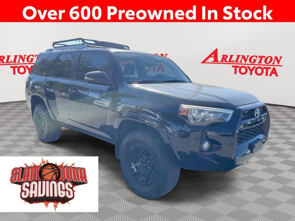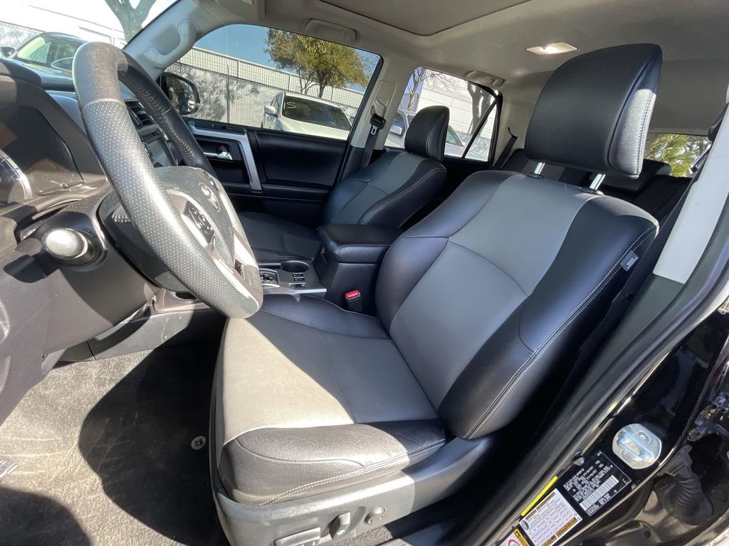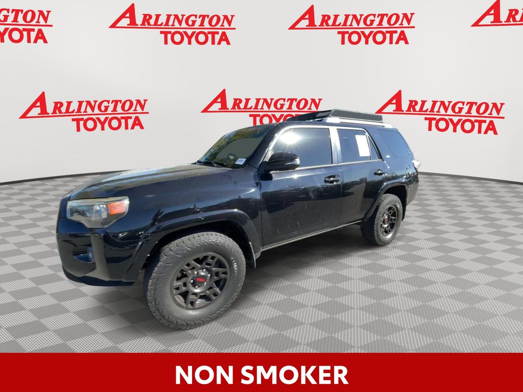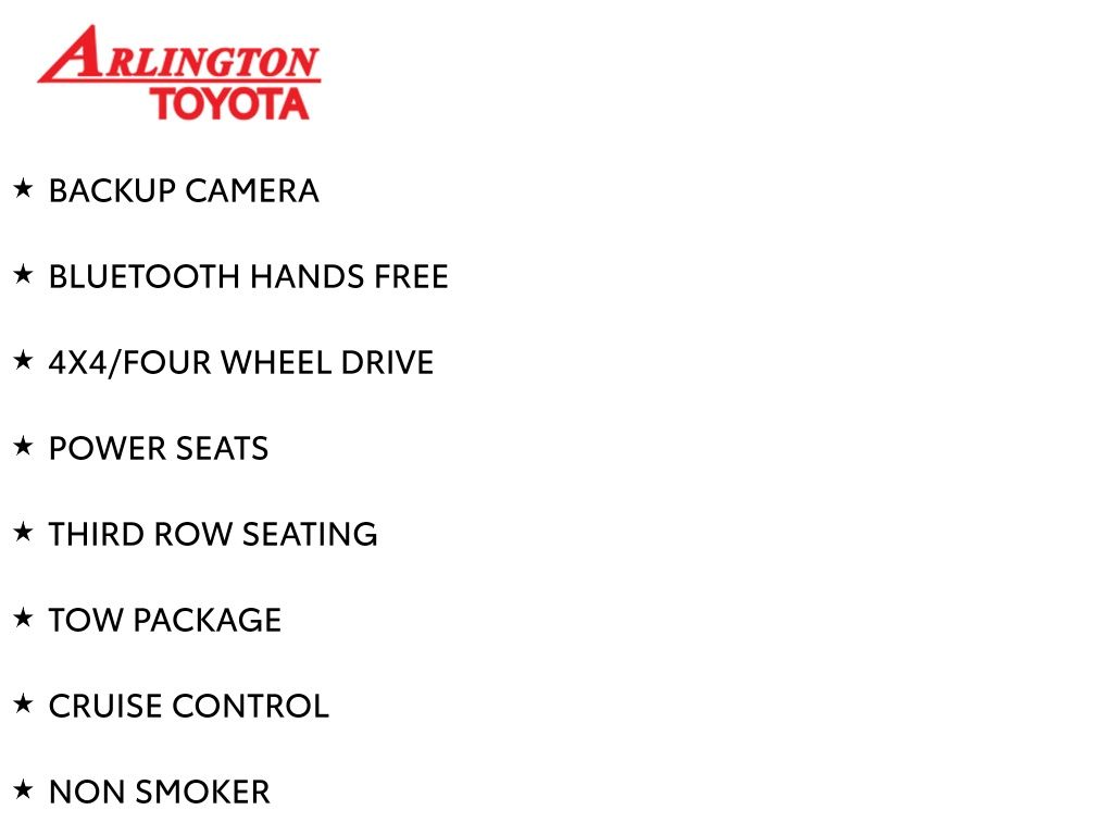 BACKUP CAMERA, BLUETOOTH HANDS FREE, 4X4/FOUR WHEEL DRIVE, POWER SEATS, THIRD ROW SEATING, TOW PACKAGE, CRUISE CONTROL, NON SMOKER, 4Runner SR5 Premium 4X4, 4D Sport Utility, 4.0L V6 SMPI DOHC, 5-Speed Automatic with Overdrive, 4WD, Midnight Black Metallic, Black Graphite w/Softex Synthetic Leather Seat Trim, Electronic Stability Control, 17" x 7.0" 6-Spoke Alloy Wheels, 3.727 Axle Ratio, 4-Wheel Disc Brakes, 8 Speakers, ABS brakes, Air Conditioning, Alloy wheels, AM/FM radio: SiriusXM, Anti-whiplash front head restraints, Auto-Dimming Rear-View Mirror, Auto-dimming Rear-View mirror, Body Color Heated Mirrors, Brake assist, Bumpers: body-color, CD player, Compass, Driver door bin, Driver vanity mirror, Dual front impact airbags, Dual front side impact airbags, Emergency communication system: Safety Connect, Exterior Parking Camera Rear, Front anti-roll bar, Front Bucket Seats, Front Center Armrest, Front fog lights, Front reading lights, Front wheel independent suspension, Garage Door Opener, Garage door transmitter: HomeLink, Heated door mirrors, Heated Front Bucket Seats, Heated front seats, Illuminated entry, Knee airbag, Leather Shift Knob, Leather steering wheel, Low tire pressure warning, Moonroof w/Tilt Up & Slide, Navigation System, Occupant sensing airbag, Outside temperature display, Overhead airbag, Overhead console, Panic alarm, Passenger door bin, Passenger vanity mirror, Power door mirrors, Power driver seat, Power passenger seat, Power steering, Power Tilt/Slide Moonroof w/Sunshade, Power windows, Radio: Entune Premium Audio w/Navigation, Rear anti-roll bar, Rear seat center armrest, Rear window defroster, Rear window wiper, Remote keyless entry, Roof rack: rails only, Security system, Softex Synthetic Leather Seat Trim, Softex-Trimmed 50/50 Split Fold-Flat 3rd Row, Speed control, Speed-sensing steering, Split folding rear seat, Spoiler, SR5 Premium Package w/Softex, Steering wheel mounted audio controls, Tachometer, Telescoping steering wheel, Tilt steering wheel, Traction control, Trip computer, Turn signal indicator mirrors, Variably intermittent wipers, 4Runner SR5 Premium 4X4, 4D Sport Utility, 4.0L V6 SMPI DOHC, 5-Speed Automatic with Overdrive, 4WD, Midnight Black Metallic, Black Graphite w/Softex Synthetic Leather Seat Trim, Electronic Stability Control.