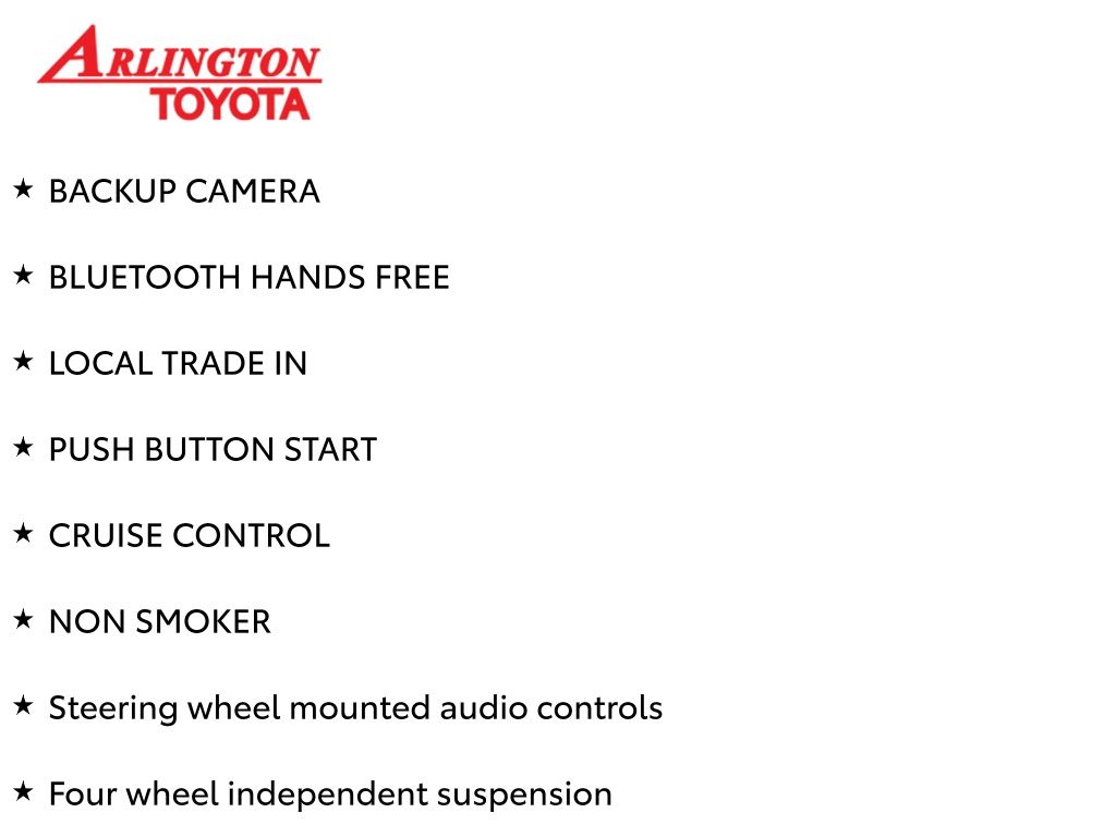 Prices do not include tax, tag, title, a pre-delivery service fee* of $894.00, an electronic registration filing fee* of $199.00 (*these charges represent costs and profits to the dealer for items such as inspecting, cleaning, and preparing documents related to the sale), and an Arlington Toyota Total Value Package of $1,889.00 (*these charges represent costs and profits to the dealer for items such as inspecting, cleaning, and preparing documents related to the sale). The final price is also subject to repair order reconditioning costs. Any price does not include dealer-installed accessories. All offers are mutually exclusive. All vehicles are subject to prior sale. See dealer for complete details.