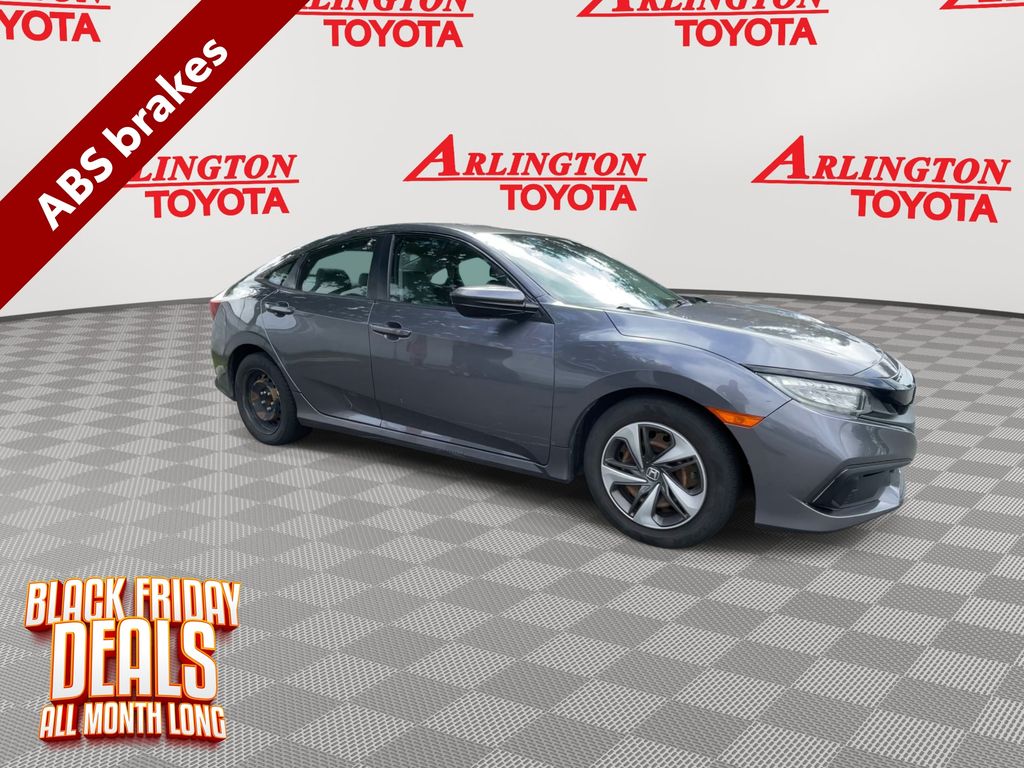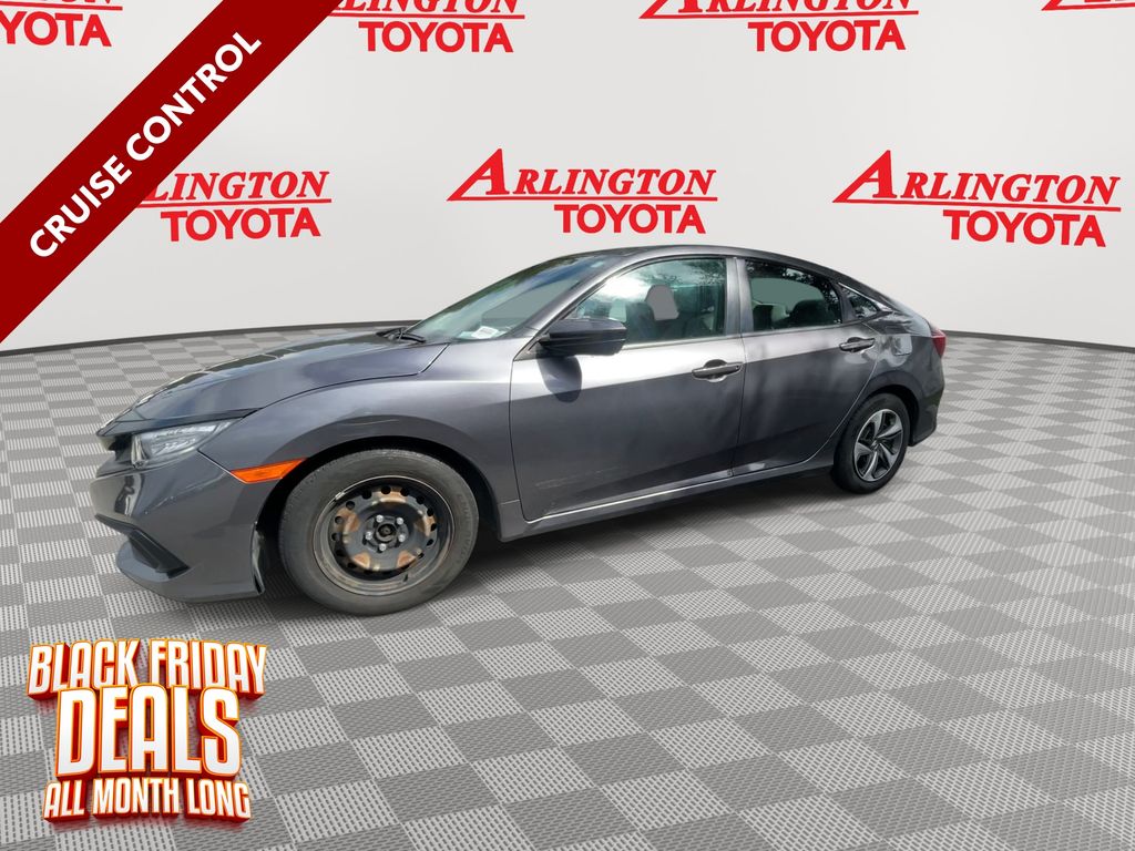 BACKUP CAMERA, BLUETOOTH HANDS FREE, CRUISE CONTROL, NON SMOKER, Civic LX, 4D Sedan, 2.0L I4 DOHC 16V i-VTEC, CVT, FWD, Modern Steel Metallic, Black w/Cloth Seat Trim, ABS brakes, Forward collision: Collision Mitigation Braking System (CMBS) + FCW mitigation, Four wheel independent suspension, Fully automatic headlights, Low tire pressure warning, Steering wheel mounted audio controls, 16" Wheels w/Full Covers, 4 Speakers, 4-Wheel Disc Brakes, Air Conditioning, AM/FM radio, Auto High-beam Headlights, Automatic temperature control, Brake assist, Bumpers: body-color, Cloth Seat Trim, Delay-off headlights, Driver door bin, Driver vanity mirror, Dual front impact airbags, Dual front side impact airbags, Electronic Stability Control, Exterior Parking Camera Rear, Front anti-roll bar, Front Bucket Seats, Front Center Armrest, Front reading lights, Illuminated entry, Lane departure: Lane Keeping Assist System (LKAS) active, Occupant sensing airbag, Outside temperature display, Overhead airbag, Panic alarm, Passenger door bin, Passenger vanity mirror, Power door mirrors, Power steering, Power windows, Radio data system, Radio: 160-Watt AM/FM Audio System, Rear anti-roll bar, Rear window defroster, Remote keyless entry, Security system, Speed control, Speed-sensing steering, Tachometer, Telescoping steering wheel, Tilt steering wheel, Traction control, Trip computer, Civic LX, 4D Sedan, 2.0L I4 DOHC 16V i-VTEC, CVT, FWD, Modern Steel Metallic, Black w/Cloth Seat Trim, ABS brakes, Forward collision: Collision Mitigation Braking System (CMBS) + FCW mitigation, Four wheel independent suspension, Fully automatic headlights, Low tire pressure warning, Steering wheel mounted audio controls.