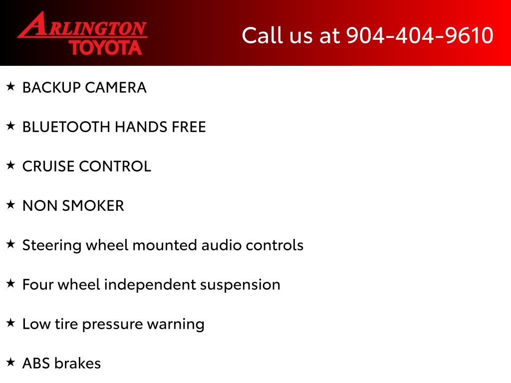 CALL FOR AVAILABILITY AND EXTRA OPTIONS ARLINGTON TOYOTA 904-721-3000.