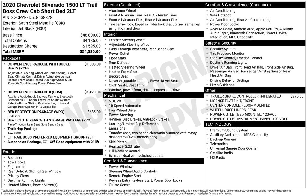 Used 2020 Chevrolet Silverado 1500 LT Trail Boss Crew Cab