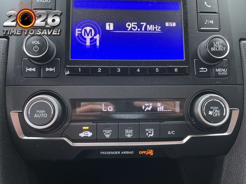 BACKUP CAMERA, BLUETOOTH HANDS FREE, ADAPTIVE CRUISE CONTROL, NON SMOKER, Civic LX, 4D Sedan, 2.0L I4 DOHC 16V i-VTEC, CVT, FWD, Crystal Black Pearl, Black w/Cloth Seat Trim, ABS brakes, Four wheel independent suspension, Fully automatic headlights, Low tire pressure warning, 16" Wheels w/Full Covers, 4 Speakers, 4-Wheel Disc Brakes, Adaptive Cruise Control: Adaptive Cruise Control (ACC) with Low-Speed Follow, Air Conditioning, AM/FM radio, Auto High-beam Headlights, Automatic temperature control, Brake assist, Bumpers: body-color, Cloth Seat Trim, Delay-off headlights, Driver door bin, Driver vanity mirror, Dual front impact airbags, Dual front side impact airbags, Electronic Stability Control, Exterior Parking Camera Rear, Forward collision: Collision Mitigation Braking System (CMBS) + FCW mitigation, Front anti-roll bar, Front Bucket Seats, Front Center Armrest, Front reading lights, Illuminated entry, Lane departure: Lane Keeping Assist System (LKAS) active, Occupant sensing airbag, Outside temperature display, Overhead airbag, Panic alarm, Passenger door bin, Passenger vanity mirror, Power door mirrors, Power steering, Power windows, Radio data system, Radio: 160-Watt AM/FM Audio System, Rear anti-roll bar, Rear window defroster, Remote keyless entry, Security system, Speed control, Speed-sensing steering, Steering wheel mounted audio controls, Tachometer, Telescoping steering wheel, Tilt steering wheel, Traction control, Trip computer, Civic LX, 4D Sedan, 2.0L I4 DOHC 16V i-VTEC, CVT, FWD, Crystal Black Pearl, Black w/Cloth Seat Trim, ABS brakes, Four wheel independent suspension, Fully automatic headlights, Low tire pressure warning.