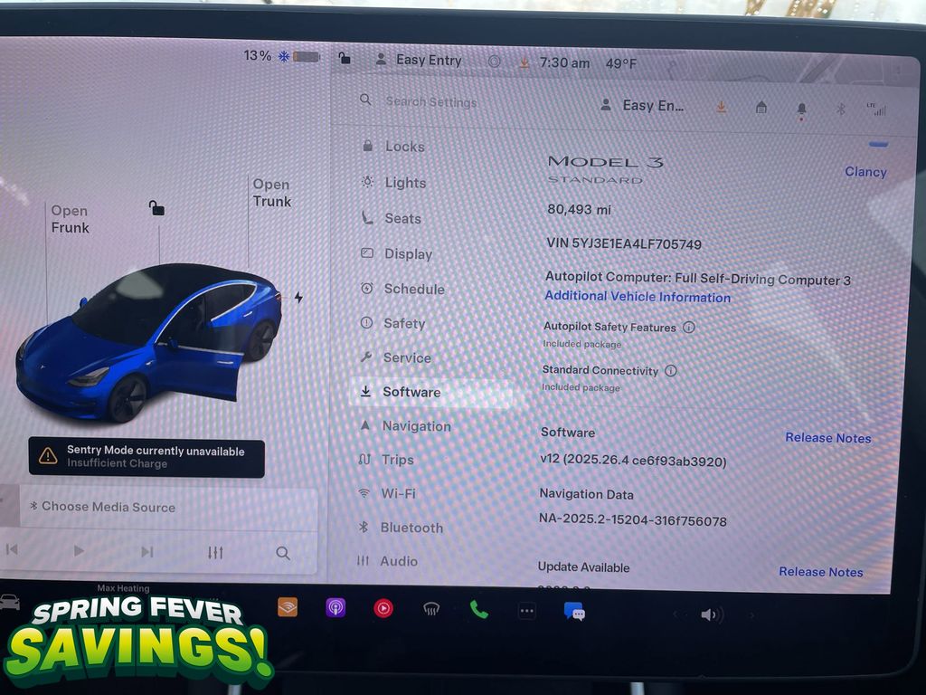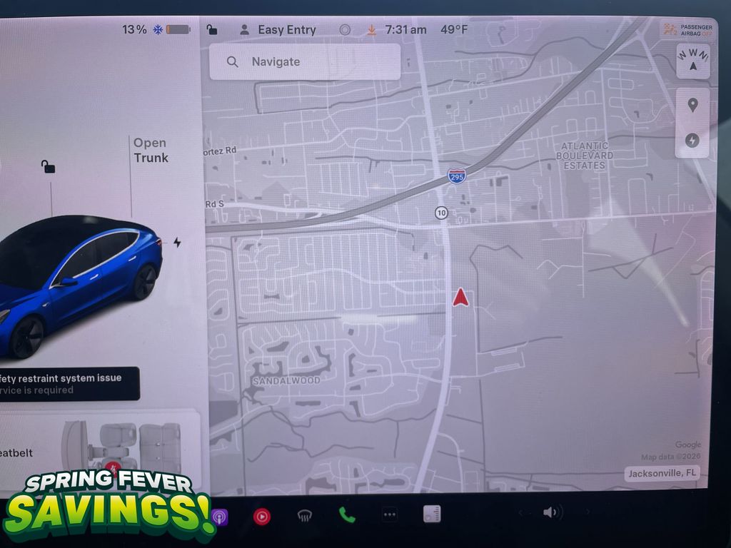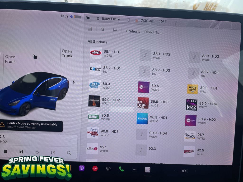 BACKUP CAMERA, BLUETOOTH HANDS FREE, POWER SEATS, MEMORY SEATS, NAVIGATION SYSTEM, CRUISE CONTROL, NON SMOKER, Model 3 Standard, 4D Sedan, Electric Motor, 1-Speed Automatic, RWD, Deep Blue Metallic, Black w/Premium Seat Trim, ABS brakes, Electronic Stability Control, Four wheel independent suspension, Front dual zone A/C, Low tire pressure warning, Steering wheel mounted A/C controls, Steering wheel mounted audio controls, 4-Wheel Disc Brakes, 8 Speakers, Air Conditioning, Alloy wheels, Auto High-beam Headlights, Auto-dimming Rear-View mirror, Automatic temperature control, Brake assist, Bumpers: body-color, Compass, Delay-off headlights, Driver door bin, Driver vanity mirror, Dual front impact airbags, Dual front side impact airbags, Exterior Parking Camera Rear, Front anti-roll bar, Front Bucket Seats, Front Center Armrest, Front reading lights, Fully automatic headlights, Genuine wood dashboard insert, Heated door mirrors, Heated front seats, Illuminated entry, Knee airbag, Lane Departure Warning System, Memory seat, Navigation System, Occupant sensing airbag, Outside temperature display, Overhead airbag, Passenger door bin, Passenger vanity mirror, Power door mirrors, Power driver seat, Power passenger seat, Power steering, Power windows, Premium Heated Front Bucket Seats, Premium Seat Trim, Radio data system, Radio: Audio System, Rear reading lights, Rear seat center armrest, Rear window defroster, Security system, Speed control, Speed-sensing steering, Split folding rear seat, Steering wheel memory, Telescoping steering wheel, Tilt steering wheel, Traction control, Trip computer, Variably intermittent wipers, Wheels: 18" x 8.5" Aero, Model 3 Standard, 4D Sedan, Electric Motor, 1-Speed Automatic, RWD, Deep Blue Metallic, Black w/Premium Seat Trim, ABS brakes, Electronic Stability Control, Four wheel independent suspension, Front dual zone A/C, Low tire pressure warning, Steering wheel mounted A/C controls, Steering wheel mounted audio controls.