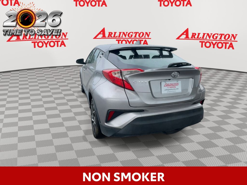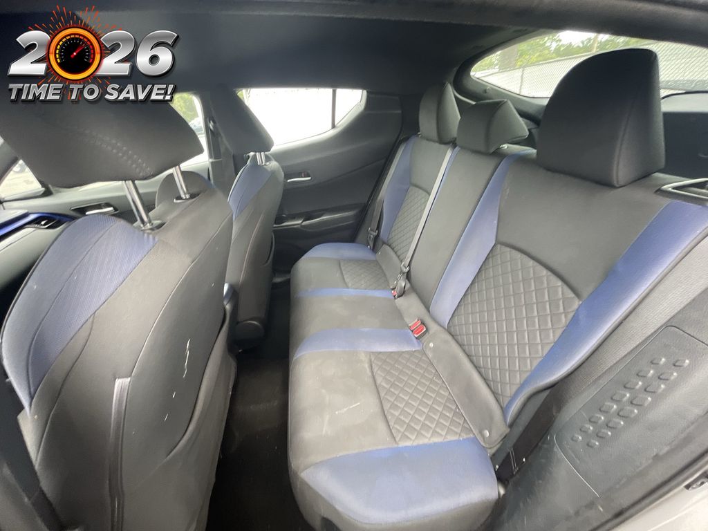 BACKUP CAMERA, BLUETOOTH HANDS FREE, LOW MILES, CRUISE CONTROL, NON SMOKER, C-HR XLE, 4D Sport Utility, 2.0L I4 DOHC 16V, CVT, FWD, Silver, Black W/Blue Cloth, ABS brakes, Electronic Stability Control, Four wheel independent suspension, Front dual zone A/C, Fully automatic headlights, Low tire pressure warning, Steering wheel mounted audio controls, Turn signal indicator mirrors, 4-Wheel Disc Brakes, 6 Speakers, Air Conditioning, Alloy wheels, AM/FM radio: SiriusXM, Apple CarPlay/Android Auto, Auto High-beam Headlights, Auto-dimming Rear-View mirror, Automatic temperature control, Axle Ratio: TBD, Brake assist, Bumpers: body-color, Delay-off headlights, Driver door bin, Driver vanity mirror, Dual front impact airbags, Dual front side impact airbags, Exterior Parking Camera Rear, Fabric Seat Material, Front anti-roll bar, Front Bucket Seats, Front Center Armrest, Front reading lights, Heated door mirrors, Illuminated entry, Knee airbag, Leather Shift Knob, Occupant sensing airbag, Outside temperature display, Overhead airbag, Panic alarm, Passenger door bin, Passenger vanity mirror, Power door mirrors, Power Liftgate, Power steering, Power windows, Radio data system, Radio: AM/FM Stereo w/8" Touch-Screen Display, Rear anti-roll bar, Rear side impact airbag, Rear window defroster, Rear window wiper, Remote keyless entry, Speed control, Speed-sensing steering, Split folding rear seat, Spoiler, Tachometer, Telescoping steering wheel, Tilt steering wheel, Traction control, Trip computer, Variably intermittent wipers, Wheels: 7" x 18" Sport Alloy, C-HR XLE, 4D Sport Utility, 2.0L I4 DOHC 16V, CVT, FWD, Silver, Black W/Blue Cloth, ABS brakes, Electronic Stability Control, Four wheel independent suspension, Front dual zone A/C, Fully automatic headlights, Low tire pressure warning, Steering wheel mounted audio controls, Turn signal indicator mirrors.