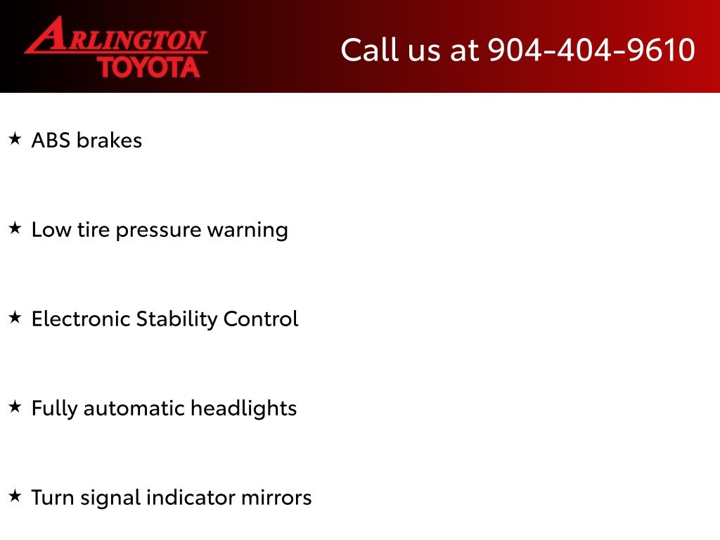 CALL FOR AVAILABILITY AND EXTRA OPTIONS ARLINGTON TOYOTA 904-721-3000.