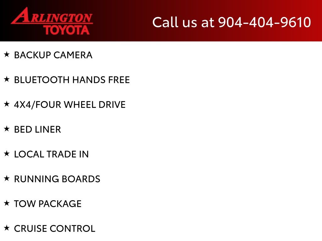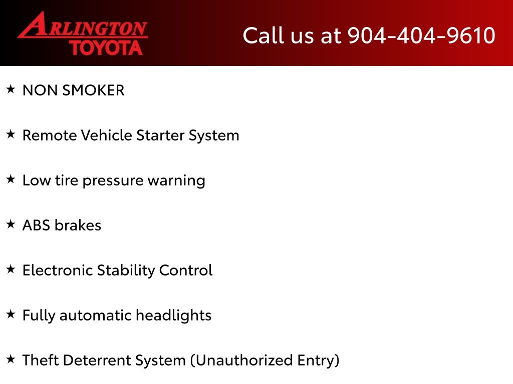 CALL FOR AVAILABILITY AND EXTRA OPTIONS ARLINGTON TOYOTA 904-721-3000.