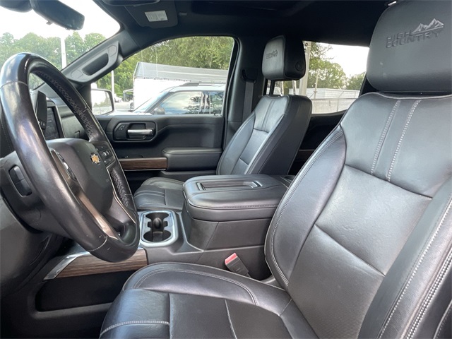 Odometer is 17151 miles below market average!BACKUP CAMERA, BLUETOOTH HANDS FREE, ANDROID AUTO, APPLE CARPLAY, 4X4/FOUR WHEEL DRIVE, POWER SEATS, TOW PACKAGE, PUSH BUTTON START, CRUISE CONTROL, NON SMOKER, Silverado 1500 High Country 4X4, 4D Crew Cab, EcoTec3 6.2L V8, 10-Speed Automatic, 4WD, Black, Jet Black Leather, 15" Diagonal Multicolor Head-Up Display, ABS brakes, Adaptive Cruise Control, All-Weather Floor Liner (LPO), Automatic Emergency Braking, Bed View Camera, Electronic Stability Control, Following Distance Indicator, Forward Collision Alert, Front Pedestrian Braking, HD Surround Vision w/2 Trailer View Camera Provisions, High Country Deluxe, IntelliBeam Automatic High Beam On/Off, Lane Keep Assist w/Lane Departure Warning, Low tire pressure warning, Power Sunroof, Rear Camera Mirror, Safety Alert Seat, Safety Package II, Steering wheel mounted audio controls, Technology Package, 10-Way Power Driver Seat w/Lumbar, 10-Way Power Passenger Seat Adjuster w/Lumbar, 12-Volt Rear Auxiliary Power Outlet, 120-Volt Bed Mounted Power Outlet, 120-Volt Instrument Panel Power Outlet, 170 Amp Alternator, 3.23 Rear Axle Ratio, 4-Wheel Disc Brakes, 4G LTE Wi-Fi Hot Spot Capable, 7 Speakers, 8" Driver Information Center, Adaptive Ride Control Suspension, Advanced Trailering System, Air Conditioning, Alloy wheels, AM/FM radio: SiriusXM with 360L, Apple CarPlay/Android Auto, Auto-dimming door mirrors, Auto-Dimming Inside Rear-View Mirror, Auto-dimming Rear-View mirror, Auto-Locking Rear Differential, Automatic temperature control, Auxiliary External Transmission Oil Cooler, Bluetooth® For Phone, Brake assist, Bumpers: body-color, Chevrolet Connected Access Capable, Chevytec Spray-On Black Bedliner, Chrome Assist Steps, Chrome Grille, Chrome Recovery Hooks, Color-Keyed Carpeting Floor Covering, Compass, Deep-Tinted Glass, Delay-off headlights, Driver door bin, Driver Memory, Driver vanity mirror, Dual Exhaust w/Polished Outlets, Dual front impact airbags, Dual front side impact airbags, Electric Rear-Window Defogger, Electrical Lock Control Steering Column, Electronic Cruise Control, EZ Lift Power Lock & Release Tailgate, Floor Mounted Center Console, Front anti-roll bar, Front Black Bowtie Emblem (LPO), Front Bucket Seats, Front Carpeted Floor Mats, Front Center Armrest, Front dual zone A/C, Front fog lights, Front LED Fog Lamps, Front reading lights, Front wheel independent suspension, Fully automatic headlights, Garage door transmitter, HD Rear Vision Camera, Heated door mirrors, Heated Driver & Front Outboard Passenger Seats, Heated front seats, Heated Steering Wheel, Heated steering wheel, Heavy Duty Suspension, Hitch Guidance, Hitch Guidance w/Hitch View, Illuminated entry, Integrated Trailer Brake Controller, Keyless Open & Start, Lane Change Alert w/Side Blind Zone Alert, Leather Wrapped Steering Wheel, LED Cargo Area Lighting, Manual Tilt/Telescoping Steering Column, Memory seat, Multi-Flex Tailgate, Navigation System, Occupant sensing airbag, OnStar & Chevrolet Connected Services Capable, Outside Heated Power-Adjustable Mirrors, Outside temperature display, Overhead airbag, Overhead console, Painted Mirror Caps, Panic alarm, Passenger door bin, Passenger vanity mirror, Perforated Leather Seat Trim, Power Door Locks, Power door mirrors, Power driver seat, Power Front Passenger Windows w/Express Up/Down, Power Front Windows w/Driver Express Up/Down, Power passenger seat, Power Rear Windows w/Express Down, Power Sliding Rear Window w/Rear Defogger, Power steering, Power Tailgate, Power windows, Power-Retractable Assist Steps, Preferred Equipment Group 3LZ, Premium audio system: Chevrolet Infotainment 3 Premium, Radio data system, Radio: Chevrolet Infotainment 3 Premium System, Rear Carpeted Floor Mats, Rear Cross Traffic Alert, Rear Dual USB Charging-Only Ports, Rear reading lights, Rear seat center armrest, Rear step bumper, Rear Wheelhouse Liners, Rear window defroster, Remote keyless entry, Remote Vehicle Starter System, Se