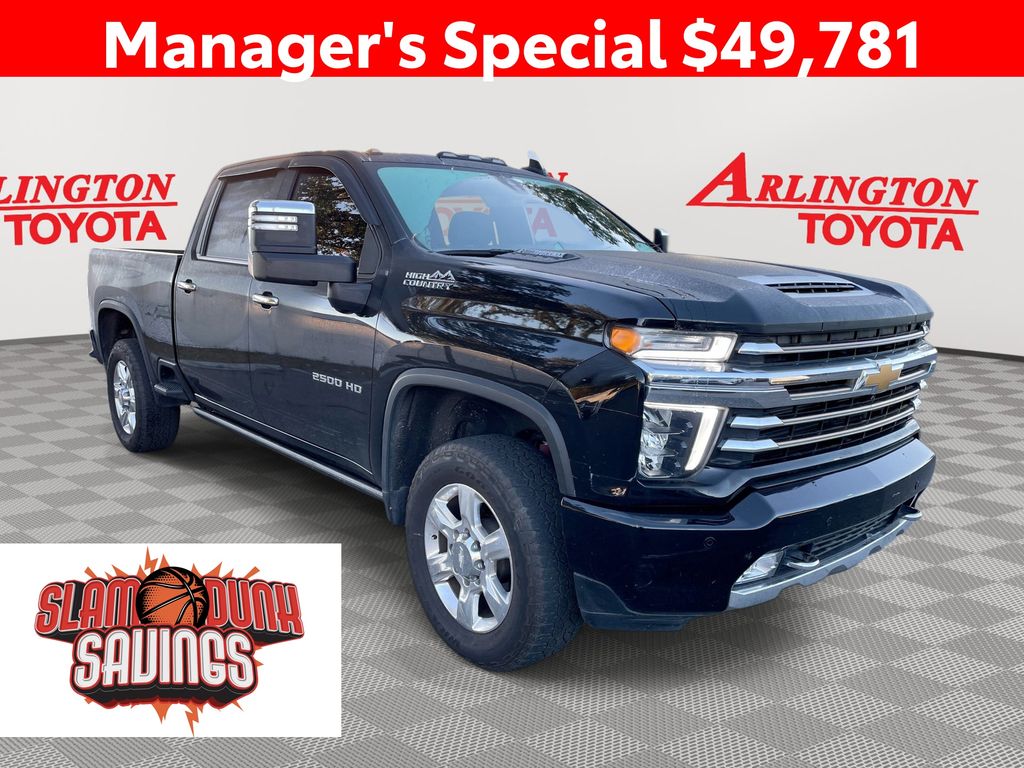 BACKUP CAMERA, BLUETOOTH HANDS FREE, ANDROID AUTO, APPLE CARPLAY, 4X4/FOUR WHEEL DRIVE, POWER SEATS, LOCAL TRADE IN, LOW MILES, MEMORY SEATS, NAVIGATION SYSTEM, SUNROOF/MOONROOF, TURBO DIESEL, PUSH BUTTON START, CRUISE CONTROL, NON SMOKER, Silverado 2500HD High Country DURAMAX 4X4, 4D Crew Cab, Duramax 6.6L V8 Turbodiesel, 10-Speed Automatic, 4WD, Black, Jet Black Leather, 10-Way Power Driver Seat Adjuster w/Lumbar, 10-Way Power Passenger Seat Adjuster w/Lumbar, 12-Volt Rear Auxiliary Power Outlet, 120-Volt Bed Mounted Power Outlet, 120-Volt Instrument Panel Power Outlet, 15" Diagonal Multicolor Head-Up Display, 170 Amp Alternator, 220 Amp Alternator, 4-Wheel Disc Brakes, 4G LTE Wi-Fi Hotspot Capable, 6" Rectangular Chromed Tubular Assist Steps, 7 Speakers, 720 Cold-Cranking Amps Heavy-Duty Battery, 8" Diagonal Multicolor Digital Display DIC, ABS brakes, Advanced Trailering System, Air Conditioning, Alloy wheels, AM/FM radio: SiriusXM with 360L, Apple CarPlay/Android Auto, Auto-dimming door mirrors, Auto-Dimming Inside Rear-View Mirror, Auto-dimming Rear-View mirror, Automatic Emergency Braking, Automatic temperature control, Bed View Camera w/2 Trailer Camera Provisions, Black Chevytec Spray-On Bedliner w/Chevrolet Logo, Bluetooth® For Phone, BOSE Premium 7-Speaker Sound System, Brake assist, Bumpers: body-color, Chevrolet Connected Access Capable, Chrome Front Grille, Chrome Mirror Caps, Chrome Recovery Hooks, Color-Keyed Carpeting Floor Covering, Compass, Deep-Tinted Glass, Delay-off headlights, Driver door bin, Driver Memory, Driver vanity mirror, Dual Charge-Only USB Ports (2nd Row), Dual front impact airbags, Dual front side impact airbags, Electric Rear-Window Defogger, Electrical Lock Control Steering Column, Electronic Cruise Control w/Set & Resume Speed, Electronic Stability Control, Engine Block Heater, Exhaust Brake, Exterior Parking Camera Rear, Floor-Mounted Center Console, Following Distance Indicator, Forward Collision Alert, Front anti-roll bar, Front Bucket Seats, Front Bucket Seats w/Center Console, Front Carpeted Floor Mats, Front Center Armrest, Front dual zone A/C, Front fog lights, Front LED Fog Lamps, Front reading lights, Front wheel independent suspension, Fully automatic headlights, Garage door transmitter, Gooseneck/5th Wheel Prep Package, HD Radio, HD Surround Vision w/2 Trailer View Cam Provisions, Heated & Auto-Dim Pwr Vertical Trailering Mirrors, Heated 2nd Row Outboard Seats, Heated door mirrors, Heated Driver & Front Outboard Passenger Seating, Heated front seats, Heated rear seats, Heated Steering Wheel, Heated steering wheel, High Country Deluxe, Hill Descent Control, Hitch Guidance w/Hitch View, Illuminated entry, Integrated Trailer Brake Controller, IntelliBeam Automatic High Beam On/Off, Keyless Open & Start, Lane Change Alert w/Side Blind Zone Alert, Lane Departure Warning System, Leather-Wrapped Steering Wheel, LED Cargo Area Lighting, LED Smoked Amber Roof Marker Lamps, Low tire pressure warning, Manual Tilt & Telescoping Steering Column, Memory seat, Navigation System, Occupant sensing airbag, Off-Road Suspension, OnStar & Chevrolet Connected Services Capable, Outside temperature display, Overhead airbag, Overhead console, Panic alarm, Passenger door bin, Passenger vanity mirror, Perforated Leather-Appointed Seat Trim, Polished Exhaust Tip, Power Door Locks, Power door mirrors, Power driver seat, Power Front Windows w/Driver Express Up/Down, Power Front Windows w/Passenger Express Up/Down, Power passenger seat, Power Rear Windows w/Express Down, Power Sliding Rear Window w/Defogger, Power steering, Power Sunroof, Power windows, Power-Retractable Assist Steps w/Bright Trim, Preferred Equipment Group 3LZ, Premium audio system: Chevrolet Infotainment 3 Premium, Radio: Chevrolet Infotainment 3 Premium System, Rear Camera Mirror, Rear Carpeted Floor Mats, Rear Cross Traffic Alert, Rear reading lights, Rear seat center armrest, Rear