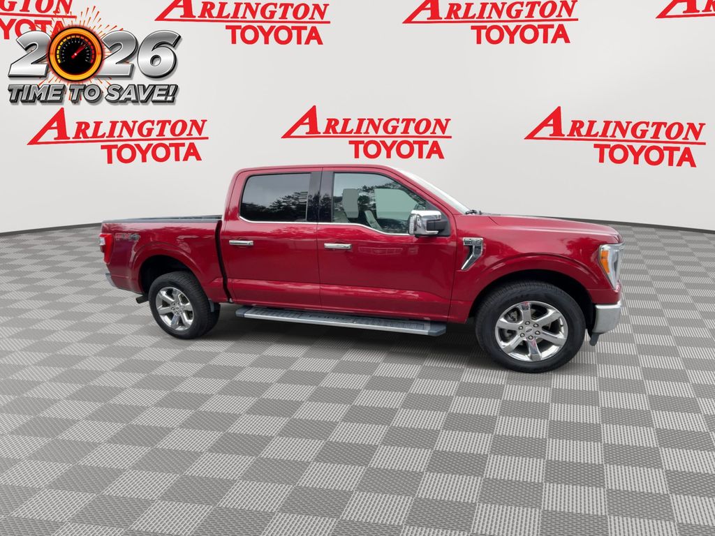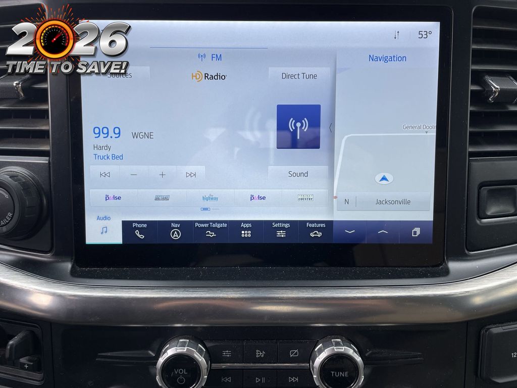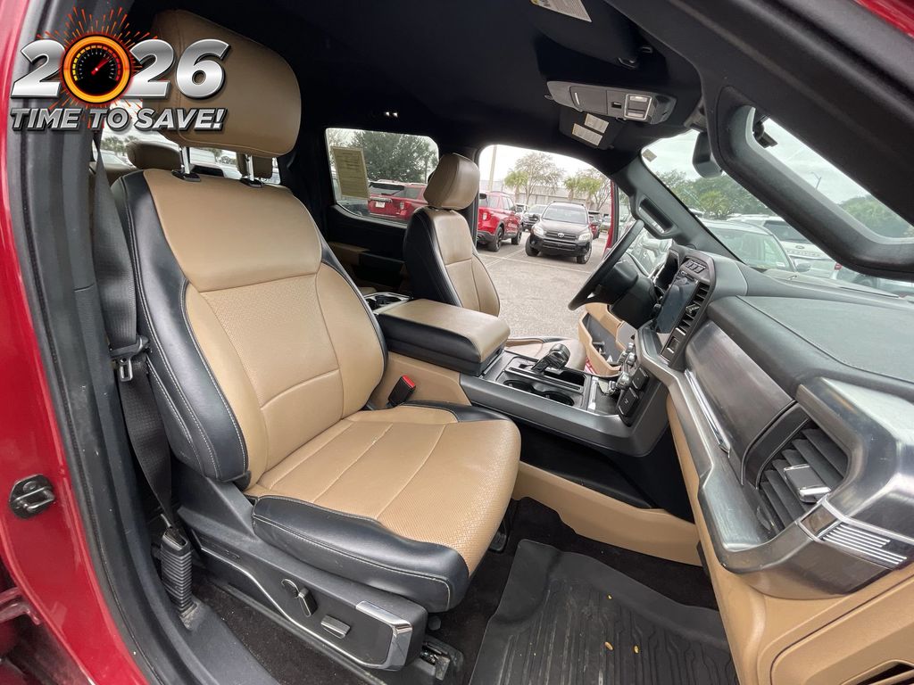 18" Machined-Aluminum Wheels, 360 Degree Camera, 4-Wheel Disc Brakes, 6" Chrome Running Board, 7 Speakers, ABS brakes, Adjustable pedals, Air Conditioning, Alloy wheels, AM/FM radio: SiriusXM with 360L, Auto High-beam Headlights, Auto-dimming door mirrors, Auto-dimming Rear-View mirror, Automatic temperature control, Brake assist, Bumpers: chrome, Chrome 2-Bar Grille w/4 Minor Bars, Chrome Door & Tailgate Handles w/Body-Color Bezel, Chrome Single-Tip Exhaust, Chrome Skull Caps on Exterior Mirrors, Class IV Trailer Hitch Receiver, Compass, Connected Built-In Navigation, Delay-off headlights, Driver door bin, Driver vanity mirror, Dual front impact airbags, Dual front side impact airbags, Electronic Stability Control, Emergency communication system: SYNC 4 911 Assist, Equipment Group 501A Mid, Evasive Steering Assist, Extended Range 36 Gallon Fuel Tank, Exterior Parking Camera Rear, Ford Co-Pilot360 Assist 2.0, Front anti-roll bar, Front Center Armrest w/Storage, Front dual zone A/C, Front fog lights, Front reading lights, Front wheel independent suspension, Fully automatic headlights, FX4 Off-Road Package, Heated door mirrors, Heated front seats, Illuminated entry, Integrated Trailer Brake Controller, Intelligent Adaptive Cruise Control w/Stop & Go, Intersection Assist, Lariat Chrome Appearance Package, Leather-Trimmed 40/20/40 Front Seat, LED Sideview Mirror Spotlights, Low tire pressure warning, Memory seat, Navigation system: Connected Navigation (90-Day Trial), Occupant sensing airbag, Onboard 400W Outlet, Outside temperature display, Overhead airbag, Overhead console, Panic alarm, Passenger door bin, Passenger vanity mirror, Pedal memory, Power door mirrors, Power driver seat, Power passenger seat, Power steering, Power Tailgate, Power windows, Pro Power Onboard - 2KW, Pro Trailer Backup Assist, Radio data system, Radio: AM/FM SiriusXM w/360L, Radio: B&O Sound System by Bang & Olufsen, Rear reading lights, Rear seat center armrest, Rear step bumper, Rear window defroster, Remote keyless entry, Security system, Speed control, Speed Sign Recognition, Speed-sensing steering, Split folding rear seat, Steering wheel mounted audio controls, SYNC 4 w/Enhanced Voice Recognition, Tachometer, Telescoping steering wheel, Tilt steering wheel, Traction control, Trailer Tow Package, Tray Style Floor Liner (47W), Trip computer, Turn signal indicator mirrors, Universal Garage Door Opener, Variably intermittent wipers, Ventilated front seats, Voltmeter, Wheels: 18" Chrome-Like PVD, Wheels: 20" Chrome-Like PVD.