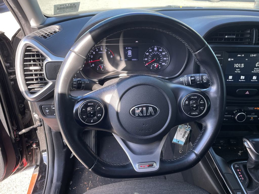 BACKUP CAMERA, BLUETOOTH HANDS FREE, ANDROID AUTO, APPLE CARPLAY, LOCAL TRADE IN, CRUISE CONTROL, NON SMOKER, Soul GT-Line, 4D Hatchback, 2.0L I4 MPI DOHC 16V LEV3-SULEV30 147hp, CVT, FWD, Cherry Black, Black Cloth, ABS brakes, Electronic Stability Control, Fully automatic headlights, Low tire pressure warning, Steering wheel mounted audio controls, 4-Wheel Disc Brakes, 6 Speakers, Air Conditioning, Alloy wheels, AM/FM radio, Apple CarPlay & Android Auto, Brake assist, Bumpers: body-color, Cargo Mat w/Seatback Protection, Carpeted Floor Mats, Delay-off headlights, Driver door bin, Driver vanity mirror, Dual front impact airbags, Dual front side impact airbags, Exterior Parking Camera Rear, Front anti-roll bar, Front Bucket Seats, Front Center Armrest, Front fog lights, Front reading lights, Front wheel independent suspension, Leather Shift Knob, Leather steering wheel, Occupant sensing airbag, Outside temperature display, Overhead airbag, Overhead console, Passenger door bin, Passenger vanity mirror, Power door mirrors, Power moonroof, Power steering, Power windows, Premium Cloth Seat Trim, Radio: AM/FM/MP3 Audio System, Rear window defroster, Rear window wiper, Remote keyless entry, Speed control, Speed-sensing steering, Split folding rear seat, Sport steering wheel, Tachometer, Telescoping steering wheel, Tilt steering wheel, Traction control, Trip computer, Variably intermittent wipers, Wheels: 18" x 7.5 Alloy, Soul GT-Line, 4D Hatchback, 2.0L I4 MPI DOHC 16V LEV3-SULEV30 147hp, CVT, FWD, Cherry Black, Black Cloth, ABS brakes, Electronic Stability Control, Fully automatic headlights, Low tire pressure warning, Steering wheel mounted audio controls.