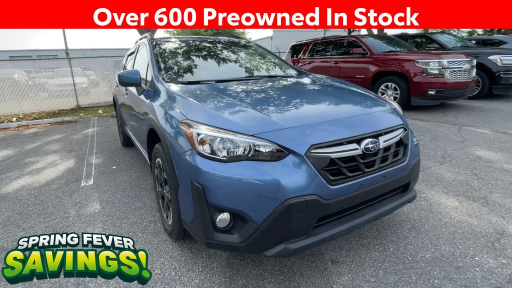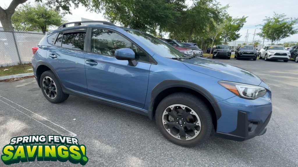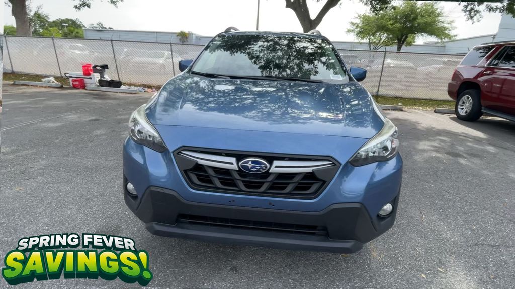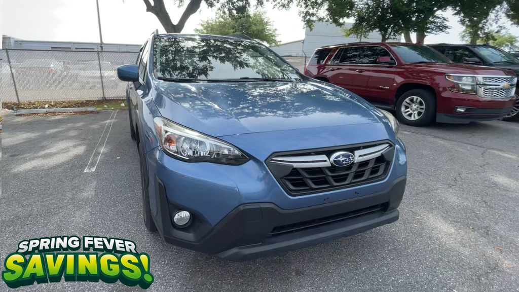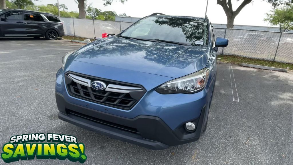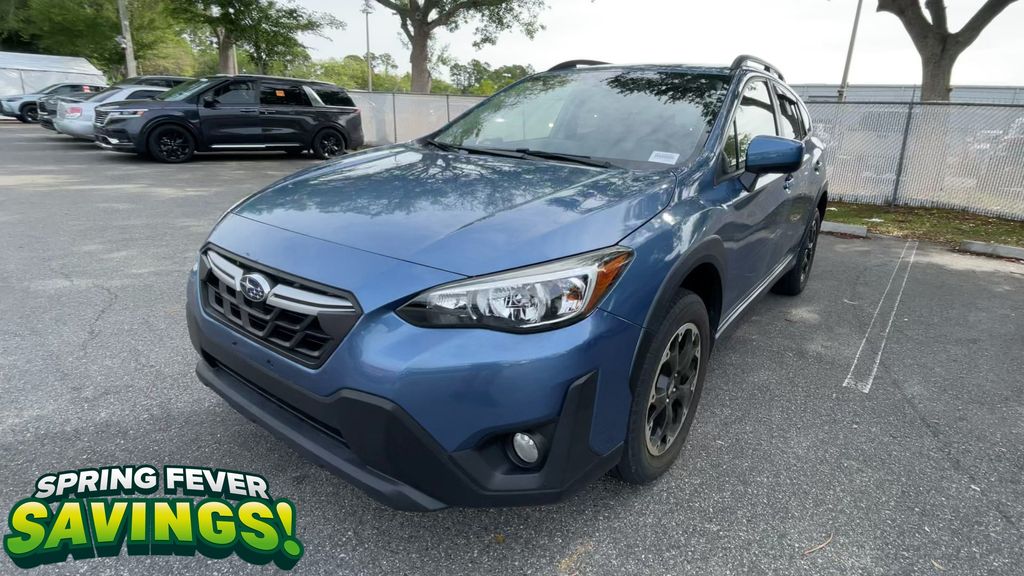 BACKUP CAMERA, BLUETOOTH HANDS FREE, AWD/ALLWHEEL DRIVE, PUSH BUTTON START, CRUISE CONTROL, NON SMOKER, Crosstrek Premium AWD, 4D Sport Utility, 2.0L DOHC, Lineartronic CVT, AWD, Horizon Blue Pearl, Gray W/Orange Stitching Cloth, ABS brakes, Four wheel independent suspension, Low tire pressure warning, Steering wheel mounted audio controls, Tire Pressure Monitoring System, 17" Alloy Wheels, 3.90 Axle Ratio, 4-Wheel Disc Brakes, 6 Speakers, Air Conditioning, All-Weather Floor Liners, Alloy wheels, AM/FM radio: SiriusXM, Anti-whiplash front head restraints, Auto-Dimming Mirror w/Compass & HomeLink, Automatic temperature control, Brake assist, Bumpers: body-color, CD player, Cloth Upholstery, Driver door bin, Driver vanity mirror, Dual front impact airbags, Dual front side impact airbags, Electronic Stability Control, Exterior Parking Camera Rear, EyeSight System, Front anti-roll bar, Front Bucket Seats, Front Center Armrest, Front fog lights, Front reading lights, Fully automatic headlights, Heated door mirrors, Heated Front Bucket Seats, Heated front seats, High Grade Combination Meter w/Color LCD Display, Illuminated entry, Illuminated Storage Tray in Front Center Console, Knee airbag, Leather Shift Knob, Leather-Wrapped Shift Lever Handle, Occupant sensing airbag, Outside temperature display, Overhead airbag, Overhead console, Overhead Console Shower Light, Panic alarm, Passenger door bin, Passenger vanity mirror, Power door mirrors, Power steering, Power windows, Radio data system, Radio: Subaru STARLINK 6.5" Multimedia Plus System, Rear anti-roll bar, Rear Bumper Cover, Rear Seat Reminder, Rear window defroster, Rear window wiper, Remote keyless entry, Security system, Speed control, Speed-sensing steering, Splash Guards, Split folding rear seat, Spoiler, Standard Model (CVT), STARLINK/Apple CarPlay/Android Auto, Subaru STARLINK Smartphone Integration, Tachometer, Telescoping steering wheel, Tilt steering wheel, Traction control, Trip computer, Variably intermittent wipers, Crosstrek Premium AWD, 4D Sport Utility, 2.0L DOHC, Lineartronic CVT, AWD, Horizon Blue Pearl, Gray W/Orange Stitching Cloth, ABS brakes, Four wheel independent suspension, Low tire pressure warning, Steering wheel mounted audio controls, Tire Pressure Monitoring System.
