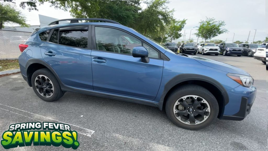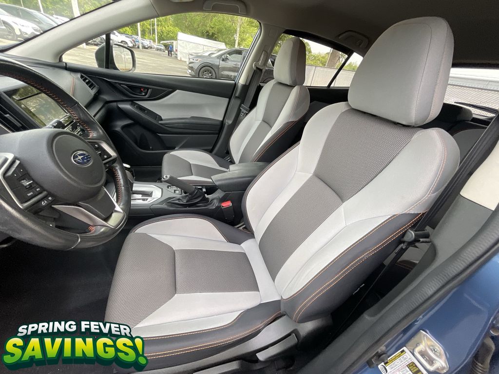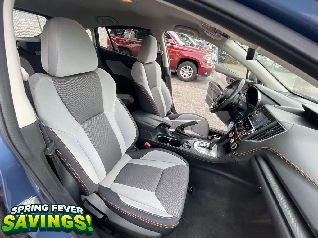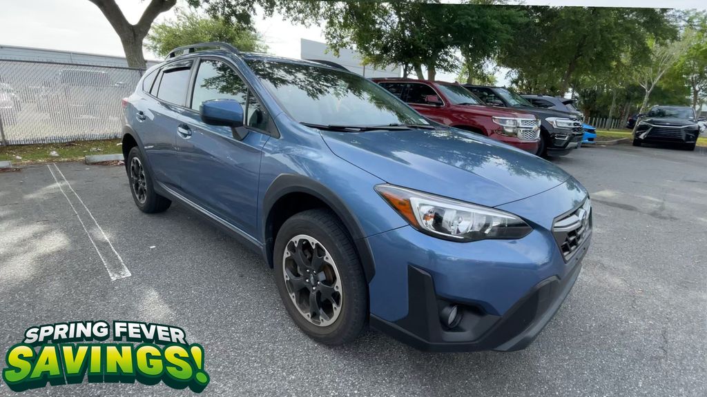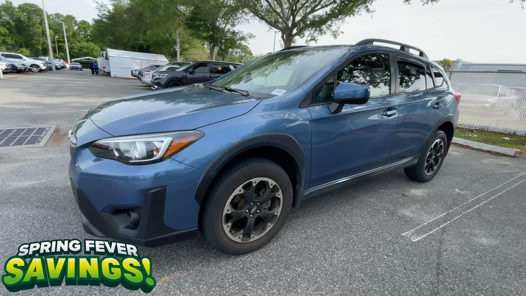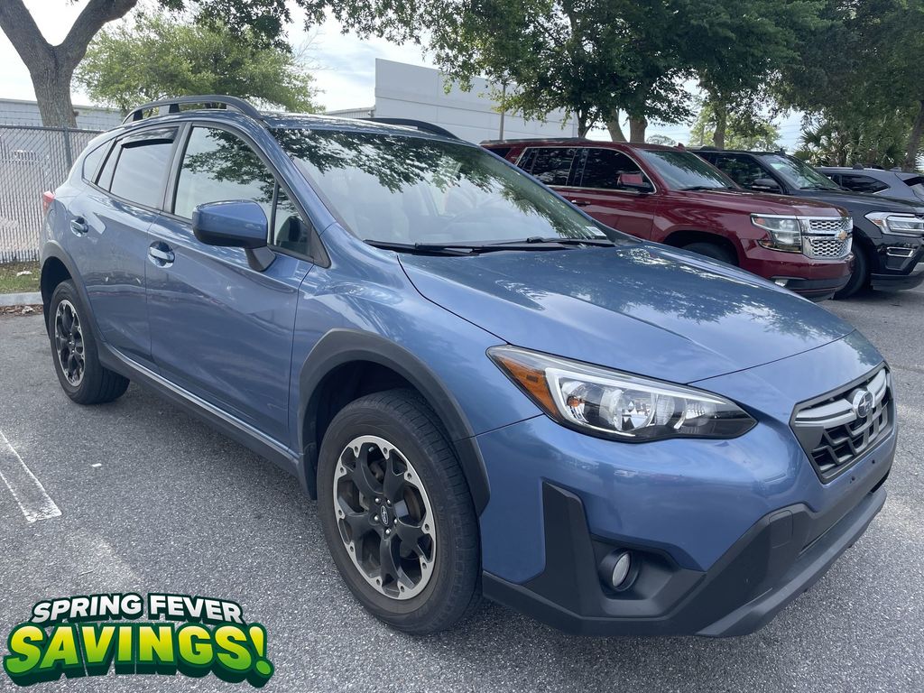 BACKUP CAMERA, BLUETOOTH HANDS FREE, AWD/ALLWHEEL DRIVE, PUSH BUTTON START, CRUISE CONTROL, NON SMOKER, Crosstrek Premium AWD, 4D Sport Utility, 2.0L DOHC, Lineartronic CVT, AWD, Horizon Blue Pearl, Gray W/Orange Stitching Cloth, ABS brakes, Four wheel independent suspension, Low tire pressure warning, Steering wheel mounted audio controls, Tire Pressure Monitoring System, 17" Alloy Wheels, 3.90 Axle Ratio, 4-Wheel Disc Brakes, 6 Speakers, Air Conditioning, All-Weather Floor Liners, Alloy wheels, AM/FM radio: SiriusXM, Anti-whiplash front head restraints, Auto-Dimming Mirror w/Compass & HomeLink, Automatic temperature control, Brake assist, Bumpers: body-color, CD player, Cloth Upholstery, Driver door bin, Driver vanity mirror, Dual front impact airbags, Dual front side impact airbags, Electronic Stability Control, Exterior Parking Camera Rear, EyeSight System, Front anti-roll bar, Front Bucket Seats, Front Center Armrest, Front fog lights, Front reading lights, Fully automatic headlights, Heated door mirrors, Heated Front Bucket Seats, Heated front seats, High Grade Combination Meter w/Color LCD Display, Illuminated entry, Illuminated Storage Tray in Front Center Console, Knee airbag, Leather Shift Knob, Leather-Wrapped Shift Lever Handle, Occupant sensing airbag, Outside temperature display, Overhead airbag, Overhead console, Overhead Console Shower Light, Panic alarm, Passenger door bin, Passenger vanity mirror, Power door mirrors, Power steering, Power windows, Radio data system, Radio: Subaru STARLINK 6.5" Multimedia Plus System, Rear anti-roll bar, Rear Bumper Cover, Rear Seat Reminder, Rear window defroster, Rear window wiper, Remote keyless entry, Security system, Speed control, Speed-sensing steering, Splash Guards, Split folding rear seat, Spoiler, Standard Model (CVT), STARLINK/Apple CarPlay/Android Auto, Subaru STARLINK Smartphone Integration, Tachometer, Telescoping steering wheel, Tilt steering wheel, Traction control, Trip computer, Variably intermittent wipers, Crosstrek Premium AWD, 4D Sport Utility, 2.0L DOHC, Lineartronic CVT, AWD, Horizon Blue Pearl, Gray W/Orange Stitching Cloth, ABS brakes, Four wheel independent suspension, Low tire pressure warning, Steering wheel mounted audio controls, Tire Pressure Monitoring System.