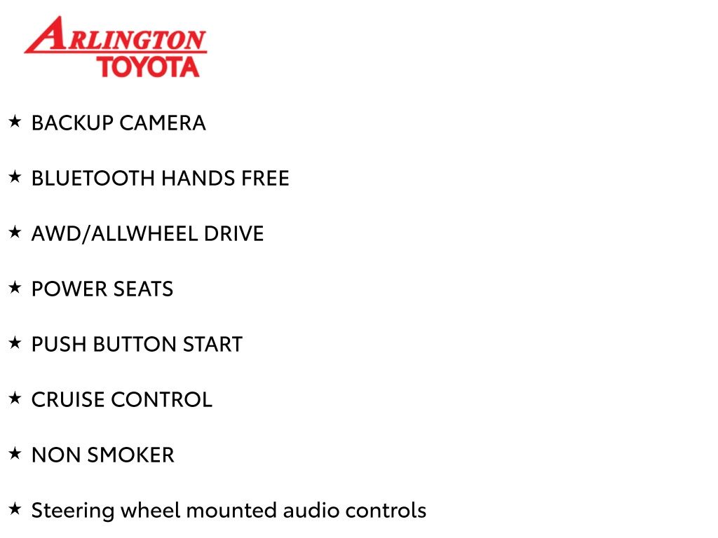 Prices do not include tax, tag, title, a pre-delivery service fee* of $894.00, an electronic registration filing fee* of $199.00 (*these charges represent costs and profits to the dealer for items such as inspecting, cleaning, and preparing documents related to the sale), and an Arlington Toyota Total Value Package of $1,889.00 (*these charges represent costs and profits to the dealer for items such as inspecting, cleaning, and preparing documents related to the sale). The final price is also subject to repair order reconditioning costs. Any price does not include dealer-installed accessories. All offers are mutually exclusive. All vehicles are subject to prior sale. See dealer for complete details.