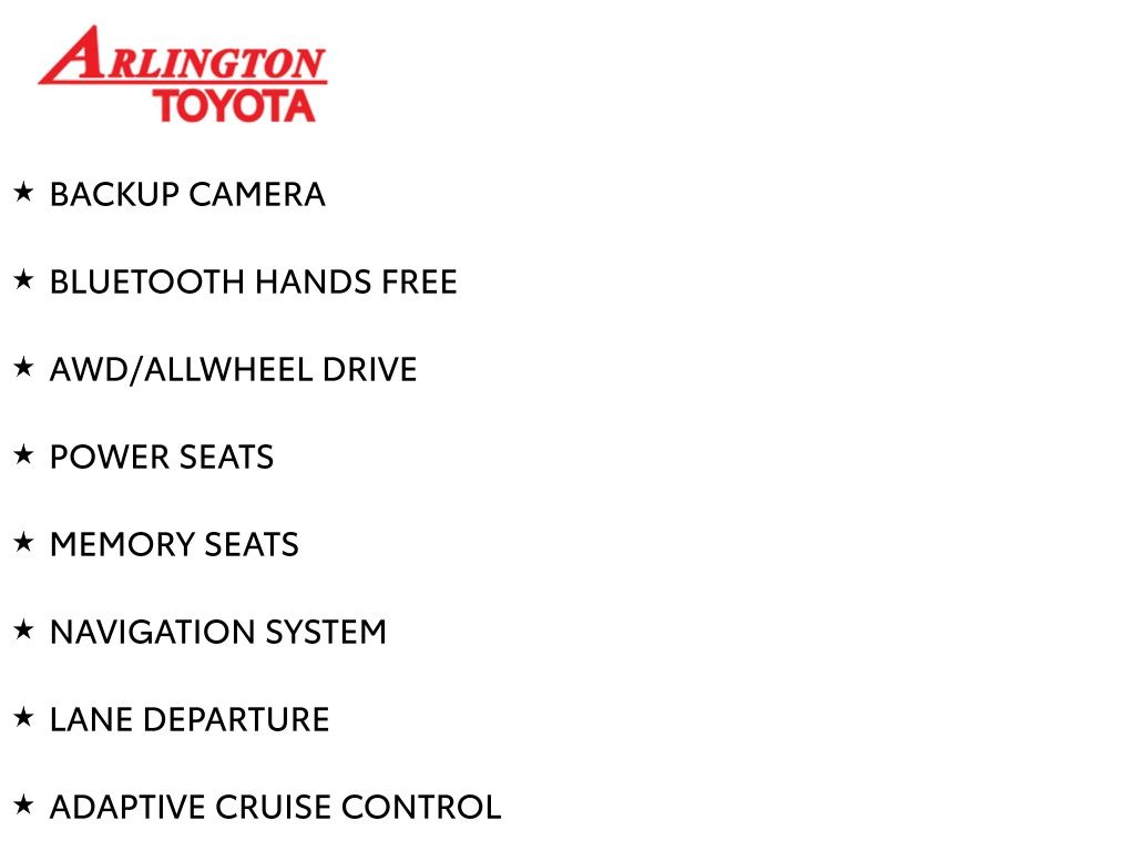 Prices do not include tax, tag, title, a pre-delivery service fee* of $894.00, an electronic registration filing fee* of $199.00 (*these charges represent costs and profits to the dealer for items such as inspecting, cleaning, and preparing documents related to the sale), and an Arlington Toyota Total Value Package of $1,889.00 (*these charges represent costs and profits to the dealer for items such as inspecting, cleaning, and preparing documents related to the sale). The final price is also subject to repair order reconditioning costs. Any price does not include dealer-installed accessories. All offers are mutually exclusive. All vehicles are subject to prior sale. See dealer for complete details.