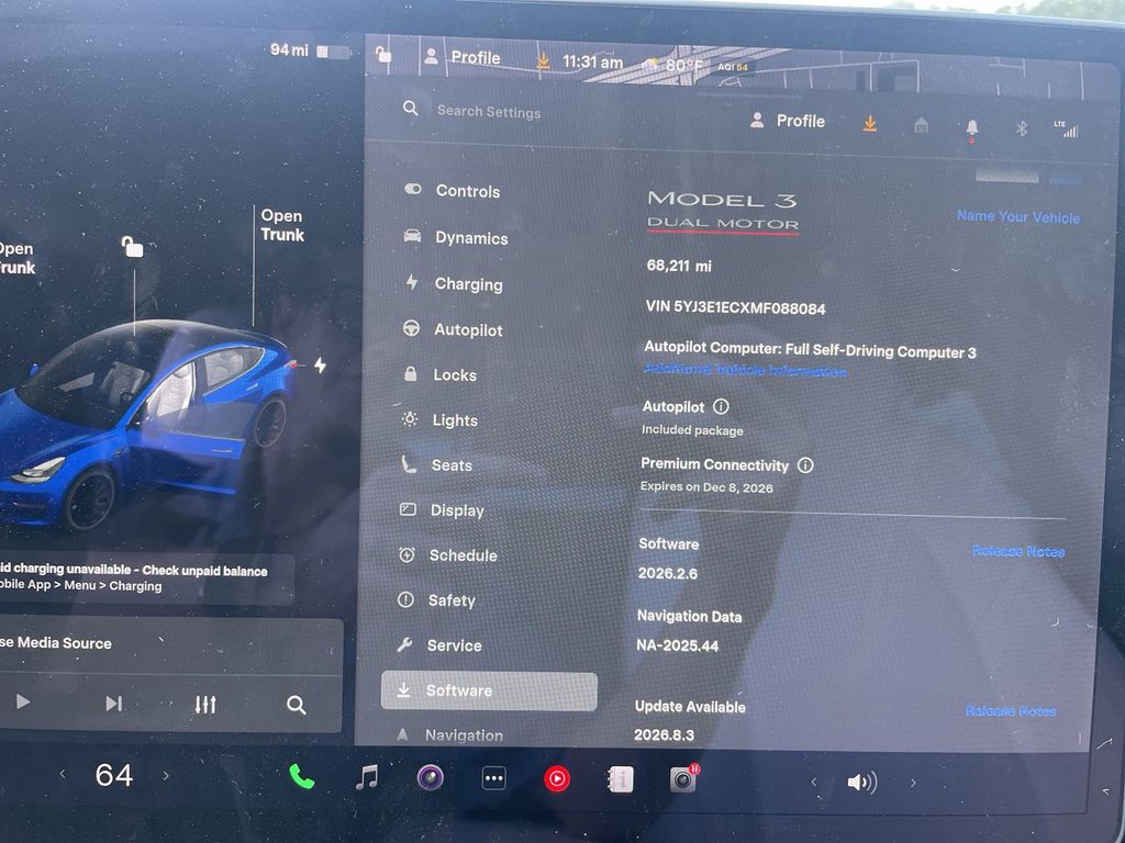 BACKUP CAMERA, BLUETOOTH HANDS FREE, AWD/ALLWHEEL DRIVE, POWER SEATS, MEMORY SEATS, NAVIGATION SYSTEM, LANE DEPARTURE, ADAPTIVE CRUISE CONTROL, NON SMOKER, Model 3 Performance AWD, 4D Sedan, Electric Motor, 1-Speed Automatic, AWD, Deep Blue Metallic, White/Black w/Premium Seat Trim, ABS brakes, Electronic Stability Control, Four wheel independent suspension, Front dual zone A/C, Fully automatic headlights, Low tire pressure warning, Steering wheel mounted A/C controls, Steering wheel mounted audio controls, 15 Speakers, 4-Wheel Disc Brakes, Air Conditioning, Alloy wheels, Auto High-beam Headlights, Auto-dimming door mirrors, Auto-dimming Rear-View mirror, Automatic temperature control, Brake assist, Bumpers: body-color, Compass, Delay-off headlights, Driver door bin, Driver vanity mirror, Dual front impact airbags, Dual front side impact airbags, Exterior Parking Camera Rear, Front anti-roll bar, Front Bucket Seats, Front Center Armrest, Front fog lights, Front reading lights, Genuine wood dashboard insert, Heated door mirrors, Heated front seats, Heated rear seats, Heated steering wheel, Illuminated entry, Knee airbag, Lane Departure Warning System, Memory seat, Navigation System, Occupant sensing airbag, Outside temperature display, Overhead airbag, Passenger door bin, Passenger vanity mirror, Power door mirrors, Power driver seat, Power passenger seat, Power steering, Power windows, Premium Audio System, Premium Heated Front Bucket Seats, Premium Seat Trim, Radio data system, Rear reading lights, Rear seat center armrest, Rear window defroster, Security system, Speed control, Speed-sensing steering, Split folding rear seat, Spoiler, Steering wheel memory, Telescoping steering wheel, Tilt steering wheel, Traction control, Trip computer, Variably intermittent wipers, Wheels: 20" x 8.5" Uberturbine, Model 3 Performance AWD, 4D Sedan, Electric Motor, 1-Speed Automatic, AWD, Deep Blue Metallic, White/Black w/Premium Seat Trim, ABS brakes, Electronic Stability Control, Four wheel independent suspension, Front dual zone A/C, Fully automatic headlights, Low tire pressure warning, Steering wheel mounted A/C controls, Steering wheel mounted audio controls.