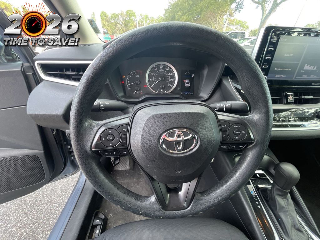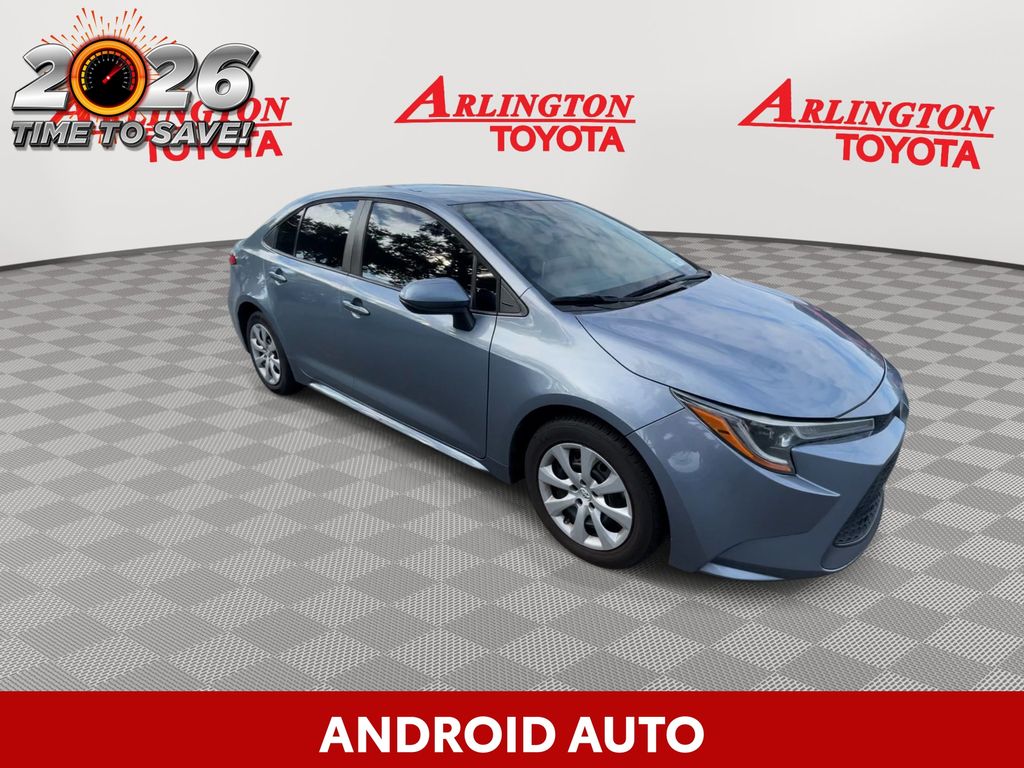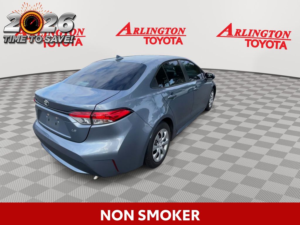 BACKUP CAMERA, BLUETOOTH HANDS FREE, ANDROID AUTO, APPLE CARPLAY, LOCAL TRADE IN, LANE DEPARTURE, ADAPTIVE CRUISE CONTROL, NON SMOKER, Corolla LE, 4D Sedan, 1.8L I4 DOHC 16V, CVT, FWD, Celestite, Black Cloth, 4-Wheel Disc Brakes, 6 Speakers, ABS brakes, Air Conditioning, AM/FM radio: SiriusXM, Apple CarPlay/Android Auto, Auto High-beam Headlights, Automatic temperature control, Brake assist, Bumpers: body-color, Delay-off headlights, Driver door bin, Driver vanity mirror, Dual front impact airbags, Dual front side impact airbags, Electronic Stability Control, Emergency communication system: Safety Connect with 1-year trial, Exterior Parking Camera Rear, Four wheel independent suspension, Front anti-roll bar, Front Bucket Seats, Front Center Armrest, Front reading lights, Fully automatic headlights, Illuminated entry, Knee airbag, Low tire pressure warning, Occupant sensing airbag, Outside temperature display, Overhead airbag, Panic alarm, Passenger door bin, Passenger vanity mirror, Power door mirrors, Power steering, Power windows, Premium Fabric Seat Trim, Radio data system, Radio: Audio, Rear anti-roll bar, Rear seat center armrest, Rear side impact airbag, Rear window defroster, Remote keyless entry, Security system, Speed control, Split folding rear seat, Steering wheel mounted audio controls, Tachometer, Telescoping steering wheel, Tilt steering wheel, Traction control, Trip computer, Variably intermittent wipers, Wheels: 16" Wide Vent Steel, Corolla LE, 4D Sedan, 1.8L I4 DOHC 16V, CVT, FWD, Celestite, Black Cloth.