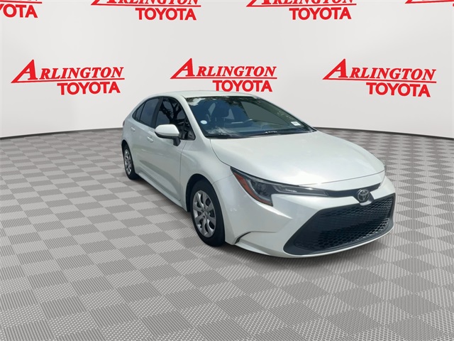 Odometer is 6547 miles below market average! Recent Arrival!BACKUP CAMERA, BLUETOOTH HANDS FREE, ANDROID AUTO, APPLE CARPLAY, LOCAL TRADE IN, LANE DEPARTURE, ADAPTIVE CRUISE CONTROL, NON SMOKER, Corolla LE, 4D Sedan, 1.8L I4 DOHC 16V, CVT, FWD, White, Black w/Premium Fabric Seat Trim, ABS brakes, Electronic Stability Control, Fully automatic headlights, Low tire pressure warning, Steering wheel mounted audio controls, 4-Wheel Disc Brakes, 6 Speakers, Air Conditioning, AM/FM radio: SiriusXM, Apple CarPlay/Android Auto, Auto High-beam Headlights, Automatic temperature control, Brake assist, Bumpers: body-color, Delay-off headlights, Driver door bin, Driver vanity mirror, Dual front impact airbags, Dual front side impact airbags, Exterior Parking Camera Rear, Four wheel independent suspension, Front anti-roll bar, Front Bucket Seats, Front Center Armrest, Front reading lights, Illuminated entry, Knee airbag, Occupant sensing airbag, Outside temperature display, Overhead airbag, Panic alarm, Passenger door bin, Passenger vanity mirror, Power door mirrors, Power steering, Power windows, Premium Fabric Seat Trim, Radio data system, Radio: Audio, Rear anti-roll bar, Rear seat center armrest, Rear side impact airbag, Rear window defroster, Remote keyless entry, Security system, Speed control, Split folding rear seat, Tachometer, Telescoping steering wheel, Tilt steering wheel, Traction control, Trip computer, Variably intermittent wipers, Wheels: 16" Wide Vent Steel, Corolla LE, 4D Sedan, 1.8L I4 DOHC 16V, CVT, FWD, White, Black w/Premium Fabric Seat Trim, ABS brakes, Electronic Stability Control, Fully automatic headlights, Low tire pressure warning, Steering wheel mounted audio controls.CALL FOR AVAILABILITY AND EXTRA OPTIONS ARLINGTON TOYOTA 904-721-3000.