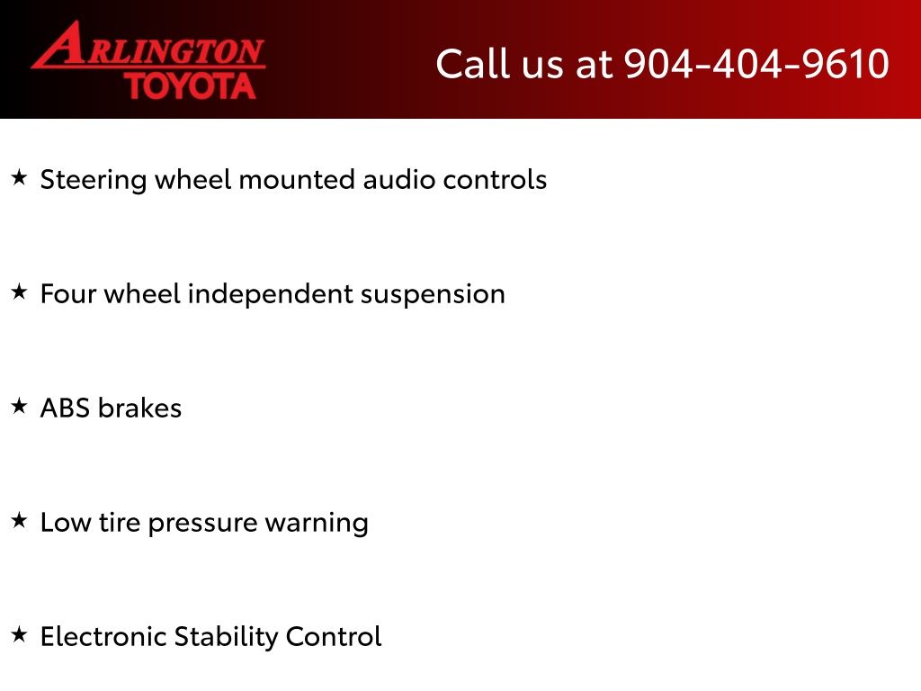 CALL FOR AVAILABILITY AND EXTRA OPTIONS ARLINGTON TOYOTA 904-721-3000.