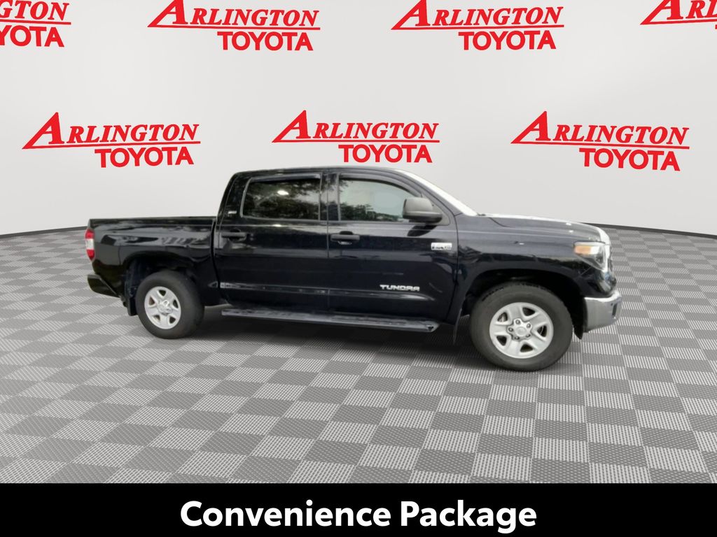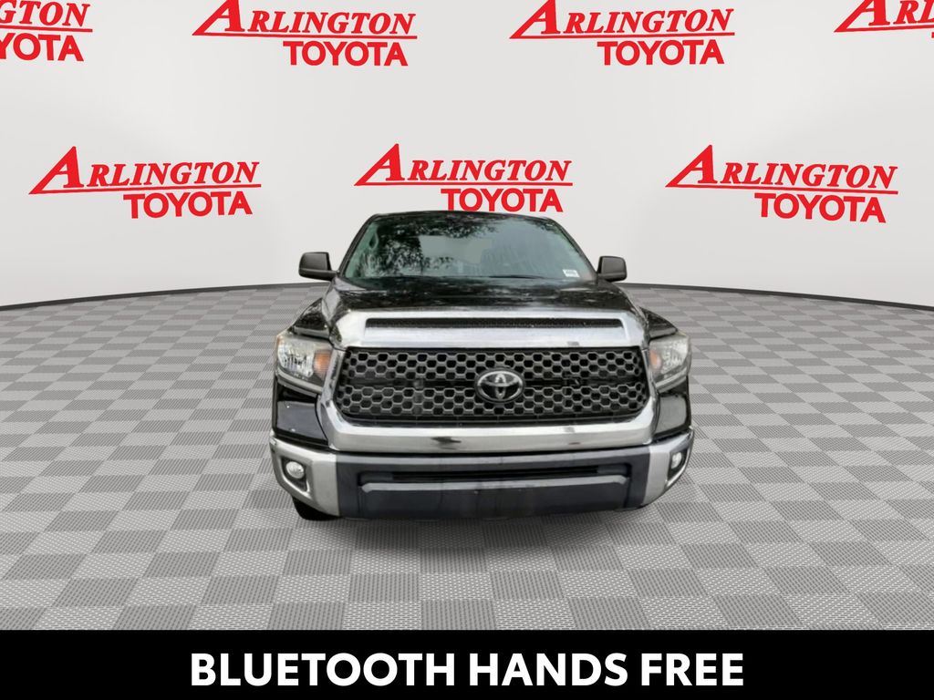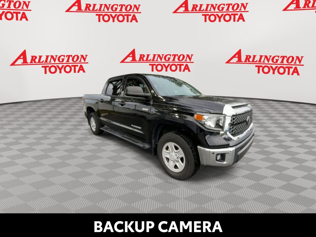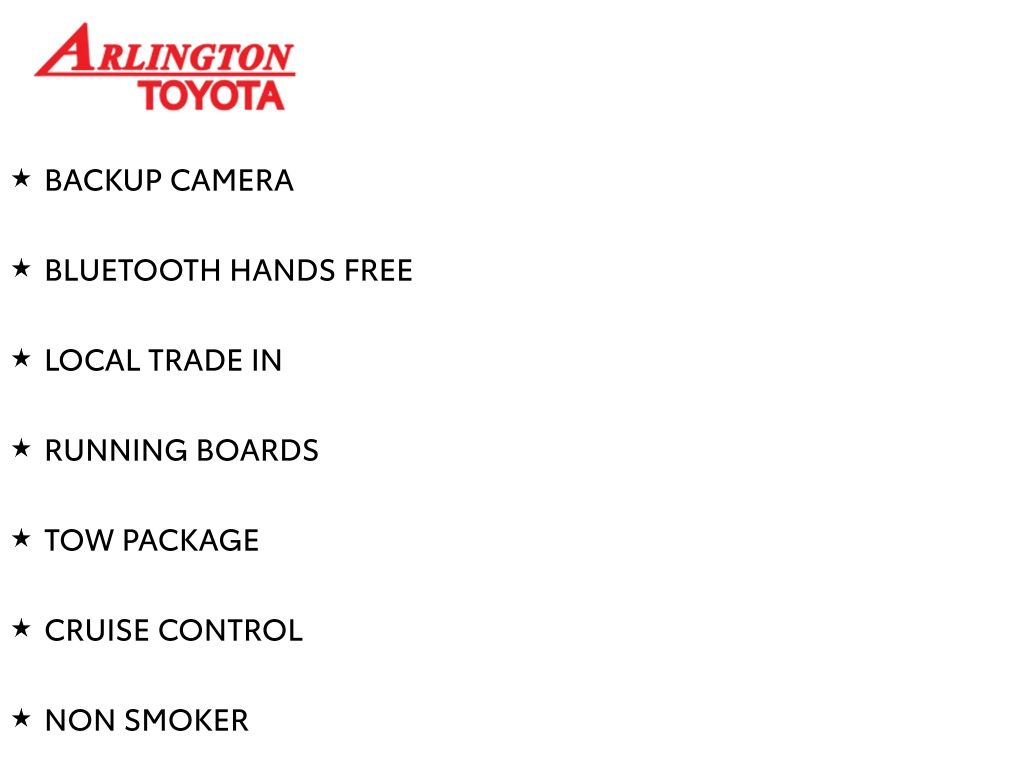 BACKUP CAMERA, BLUETOOTH HANDS FREE, LOCAL TRADE IN, RUNNING BOARDS, TOW PACKAGE, CRUISE CONTROL, NON SMOKER, Tundra SR5, 4D CrewMax, i-Force 5.7L V8 DOHC 32V LEV, 6-Speed Automatic Electronic with Overdrive, RWD, Midnight Black Metallic, Black w/Fabric Seat Trim or Fabric Seat Trim w/TRD Off Road/TRD Sport Packages, ABS brakes, Blind Spot Monitor w/Rear Cross Traffic Alert, Convenience Package, Electronic Stability Control, Front & Rear Clearance Backup Sonar, Fully automatic headlights, Low tire pressure warning, Steering wheel mounted audio controls, 18" x 8J Styled Steel Wheels, 3-Passenger Front Bench Seat, 4-Wheel Disc Brakes, 4.30 Axle Ratio, 9 Speakers, Air Conditioning, AM/FM radio: SiriusXM, Apple CarPlay/Android Auto, Auto High-beam Headlights, Auto-dimming Rear-View mirror, Brake assist, Compass, Delay-off headlights, Driver door bin, Driver vanity mirror, Dual front impact airbags, Dual front side impact airbags, Exterior Parking Camera Rear, Fabric Seat Trim, Front anti-roll bar, Front Center Armrest w/Storage, Front fog lights, Front reading lights, Front wheel independent suspension, Garage door transmitter: HomeLink, Heated door mirrors, Illuminated entry, Knee airbag, Occupant sensing airbag, Outside temperature display, Overhead airbag, Overhead console, Panic alarm, Passenger door bin, Passenger vanity mirror, Power door mirrors, Power steering, Power windows, Radio data system, Radio: Audio Plus AM/FM/HD Radio, Rear reading lights, Rear seat center armrest, Rear step bumper, Rear window defroster, Remote keyless entry, Safety Connect, SiriusXM Radio, Speed control, Speed-sensing steering, Split folding rear seat, Tachometer, Tilt steering wheel, Traction control, Trip computer, Variably intermittent wipers, Voltmeter, Tundra SR5, 4D CrewMax, i-Force 5.7L V8 DOHC 32V LEV, 6-Speed Automatic Electronic with Overdrive, RWD, Midnight Black Metallic, Black w/Fabric Seat Trim or Fabric Seat Trim w/TRD Off Road/TRD Sport Packages, ABS brakes, Blind Spot Monitor w/Rear Cross Traffic Alert, Convenience Package, Electronic Stability Control, Front & Rear Clearance Backup Sonar, Fully automatic headlights, Low tire pressure warning, Steering wheel mounted audio controls.