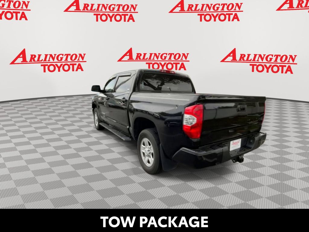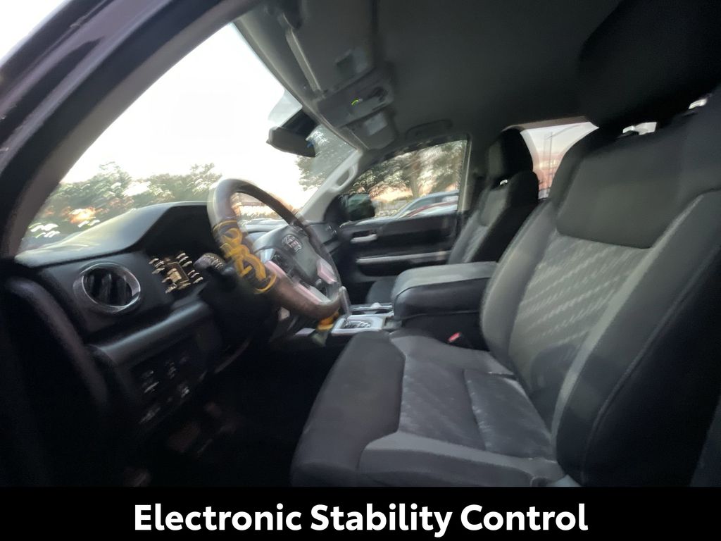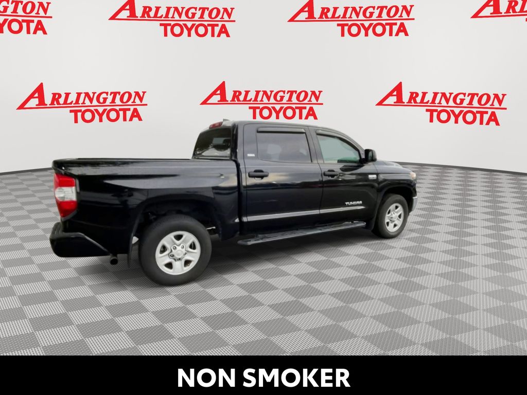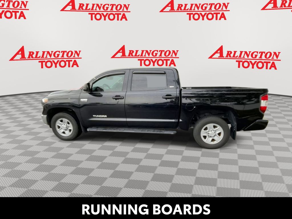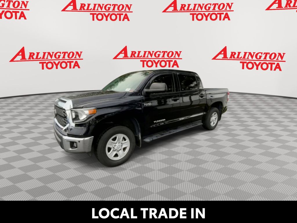 BACKUP CAMERA, BLUETOOTH HANDS FREE, LOCAL TRADE IN, RUNNING BOARDS, TOW PACKAGE, CRUISE CONTROL, NON SMOKER, Tundra SR5, 4D CrewMax, i-Force 5.7L V8 DOHC 32V LEV, 6-Speed Automatic Electronic with Overdrive, RWD, Midnight Black Metallic, Black w/Fabric Seat Trim or Fabric Seat Trim w/TRD Off Road/TRD Sport Packages, ABS brakes, Blind Spot Monitor w/Rear Cross Traffic Alert, Convenience Package, Electronic Stability Control, Front & Rear Clearance Backup Sonar, Fully automatic headlights, Low tire pressure warning, Steering wheel mounted audio controls, 18" x 8J Styled Steel Wheels, 3-Passenger Front Bench Seat, 4-Wheel Disc Brakes, 4.30 Axle Ratio, 9 Speakers, Air Conditioning, AM/FM radio: SiriusXM, Apple CarPlay/Android Auto, Auto High-beam Headlights, Auto-dimming Rear-View mirror, Brake assist, Compass, Delay-off headlights, Driver door bin, Driver vanity mirror, Dual front impact airbags, Dual front side impact airbags, Exterior Parking Camera Rear, Fabric Seat Trim, Front anti-roll bar, Front Center Armrest w/Storage, Front fog lights, Front reading lights, Front wheel independent suspension, Garage door transmitter: HomeLink, Heated door mirrors, Illuminated entry, Knee airbag, Occupant sensing airbag, Outside temperature display, Overhead airbag, Overhead console, Panic alarm, Passenger door bin, Passenger vanity mirror, Power door mirrors, Power steering, Power windows, Radio data system, Radio: Audio Plus AM/FM/HD Radio, Rear reading lights, Rear seat center armrest, Rear step bumper, Rear window defroster, Remote keyless entry, Safety Connect, SiriusXM Radio, Speed control, Speed-sensing steering, Split folding rear seat, Tachometer, Tilt steering wheel, Traction control, Trip computer, Variably intermittent wipers, Voltmeter, Tundra SR5, 4D CrewMax, i-Force 5.7L V8 DOHC 32V LEV, 6-Speed Automatic Electronic with Overdrive, RWD, Midnight Black Metallic, Black w/Fabric Seat Trim or Fabric Seat Trim w/TRD Off Road/TRD Sport Packages, ABS brakes, Blind Spot Monitor w/Rear Cross Traffic Alert, Convenience Package, Electronic Stability Control, Front & Rear Clearance Backup Sonar, Fully automatic headlights, Low tire pressure warning, Steering wheel mounted audio controls.