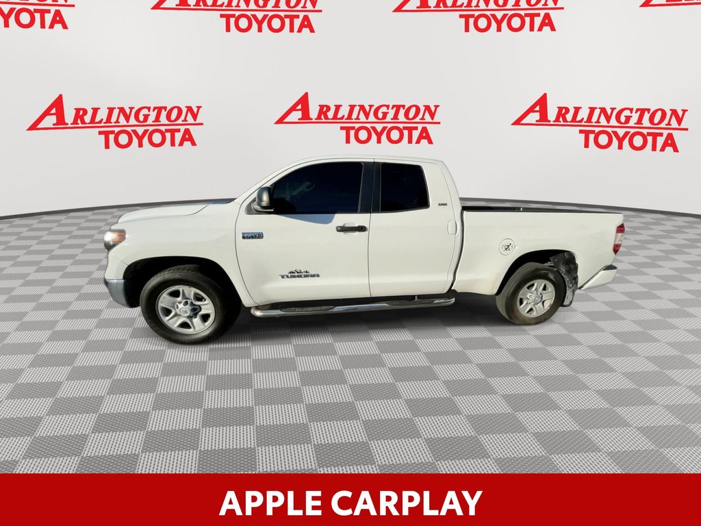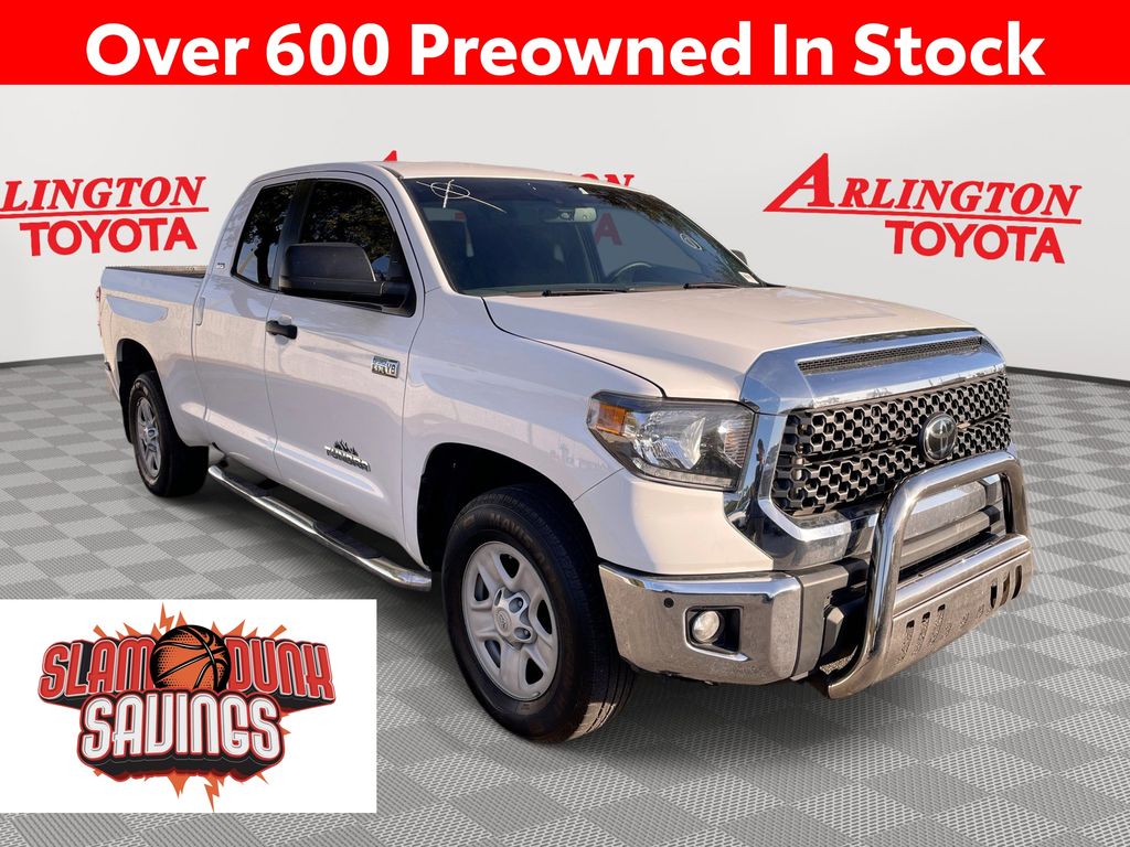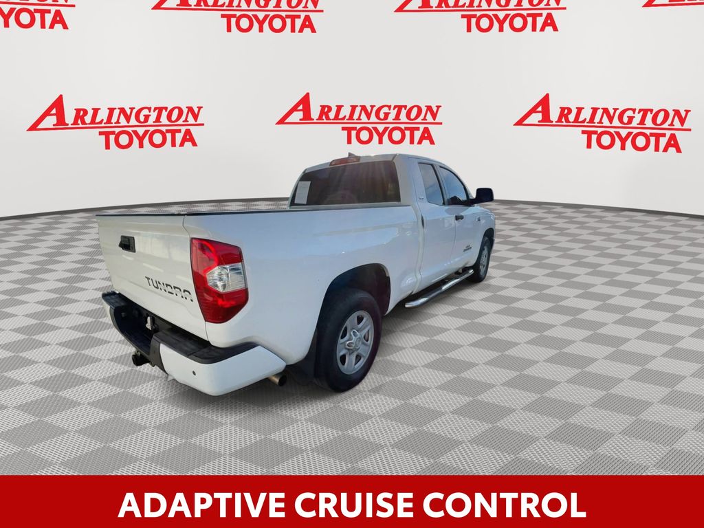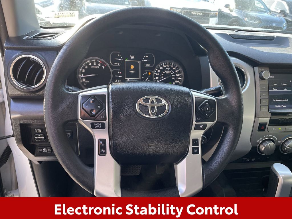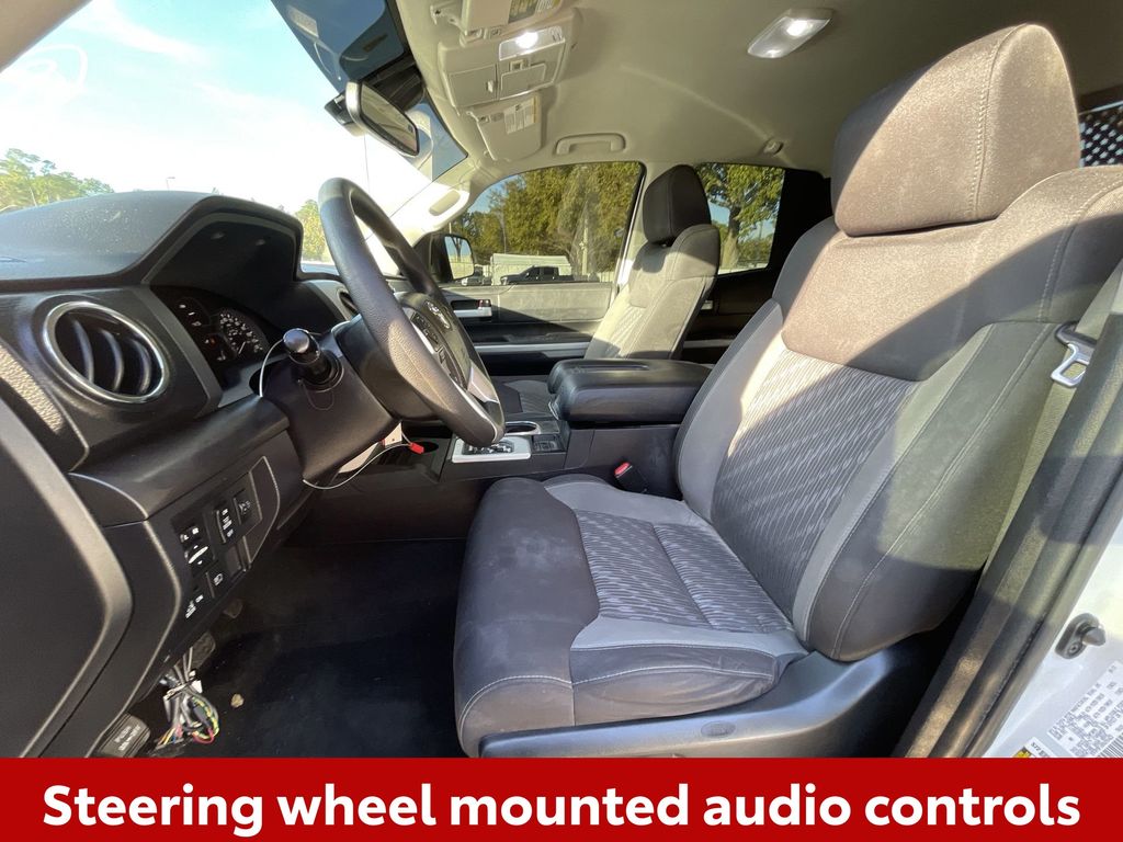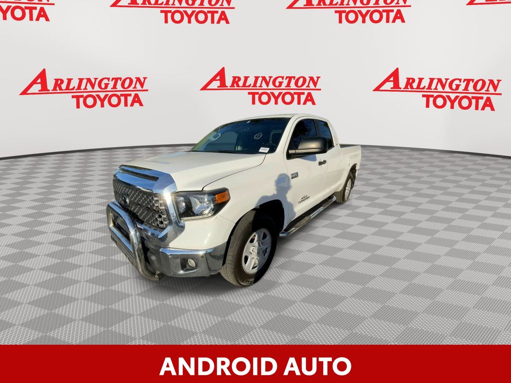 BACKUP CAMERA, BLUETOOTH HANDS FREE, ANDROID AUTO, APPLE CARPLAY, TOW PACKAGE, LANE DEPARTURE, ADAPTIVE CRUISE CONTROL, NON SMOKER, Tundra SR5, 4D Double Cab, i-Force 5.7L V8 DOHC 32V LEV, 6-Speed Automatic Electronic with Overdrive, RWD, Super White, Black Cloth, ABS brakes, Blind Spot Monitor w/Rear Cross Traffic Alert, Convenience Package, Electronic Stability Control, Front & Rear Clearance Backup Sonar, Fully automatic headlights, Low tire pressure warning, Steering wheel mounted audio controls, 18" x 8J Styled Steel Wheels, 3-Passenger Front Bench Seat, 38 Gallon Fuel Tank Capacity, 4-Wheel Disc Brakes, 4.30 Axle Ratio, 7 Speakers, Air Conditioning, AM/FM radio: SiriusXM, Anti-Theft Immobilizer w/Alarm, Apple CarPlay/Android Auto, Auto High-beam Headlights, Auto-dimming Rear-View mirror, Brake assist, Convenience EVP, Deck Rail System, Delay-off headlights, Driver door bin, Driver vanity mirror, Dual front impact airbags, Dual front side impact airbags, Exterior Parking Camera Rear, Fabric Seat Trim, Front anti-roll bar, Front Bucket Seats, Front Center Armrest w/Storage, Front Fog & Driving Lights, Front fog lights, Front reading lights, Front wheel independent suspension, Garage door transmitter: HomeLink, Heated door mirrors, Illuminated entry, Illuminated Entry System, Knee airbag, Occupant sensing airbag, Outside temperature display, Overhead airbag, Overhead console, Panic alarm, Passenger door bin, Passenger vanity mirror, Power door mirrors, Power steering, Power windows, Radio data system, Radio: Audio Plus AM/FM/HD Radio, Rear reading lights, Rear step bumper, Rear Under Seat Storage Tray, Remote keyless entry, Safety Connect, SiriusXM Radio, Sliding Rear Window w/Privacy Glass, Speed control, Speed-sensing steering, Split folding rear seat, SR5 Package, SR5 Upgrade Package, Tachometer, Tilt steering wheel, Traction control, Trip computer, Urethane Tilt/Telescopic 4-Spoke Steering Wheel, Variably intermittent wipers, Voltmeter, Tundra SR5, 4D Double Cab, i-Force 5.7L V8 DOHC 32V LEV, 6-Speed Automatic Electronic with Overdrive, RWD, Super White, Black Cloth, ABS brakes, Blind Spot Monitor w/Rear Cross Traffic Alert, Convenience Package, Electronic Stability Control, Front & Rear Clearance Backup Sonar, Fully automatic headlights, Low tire pressure warning, Steering wheel mounted audio controls.