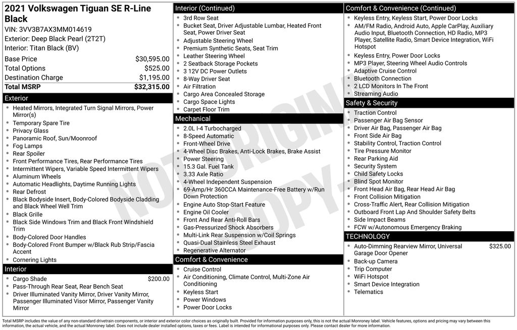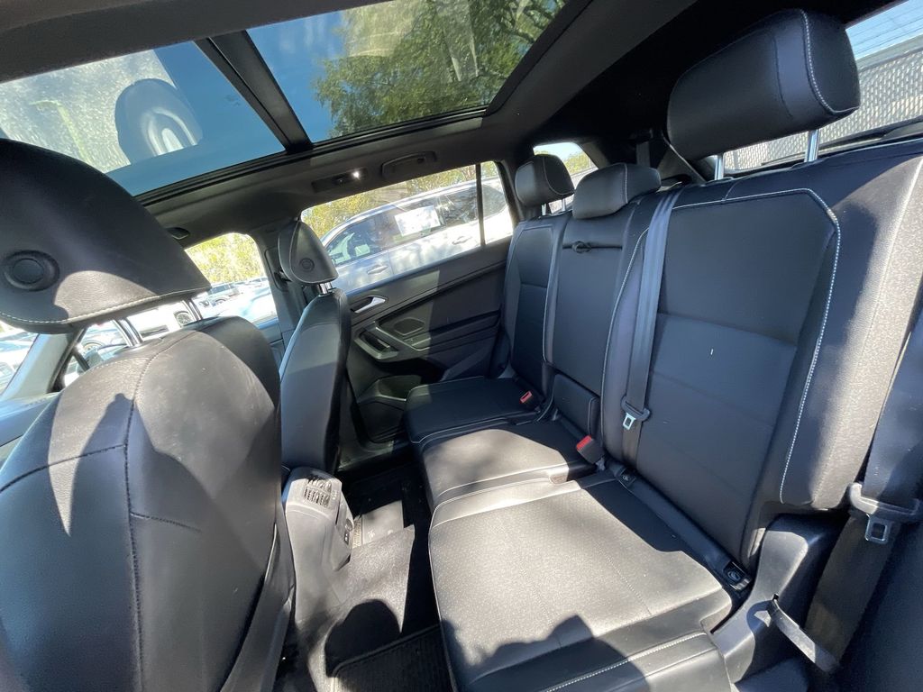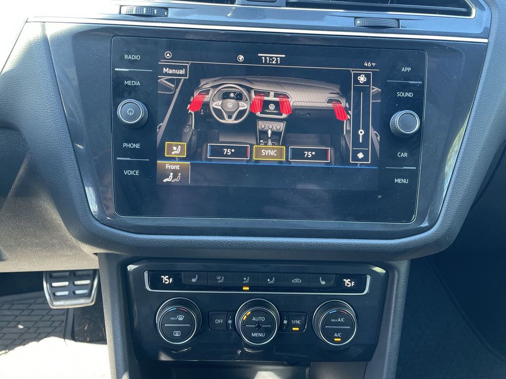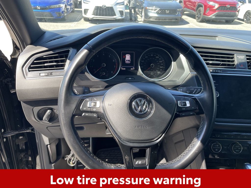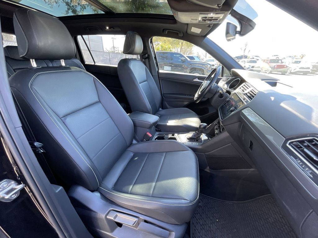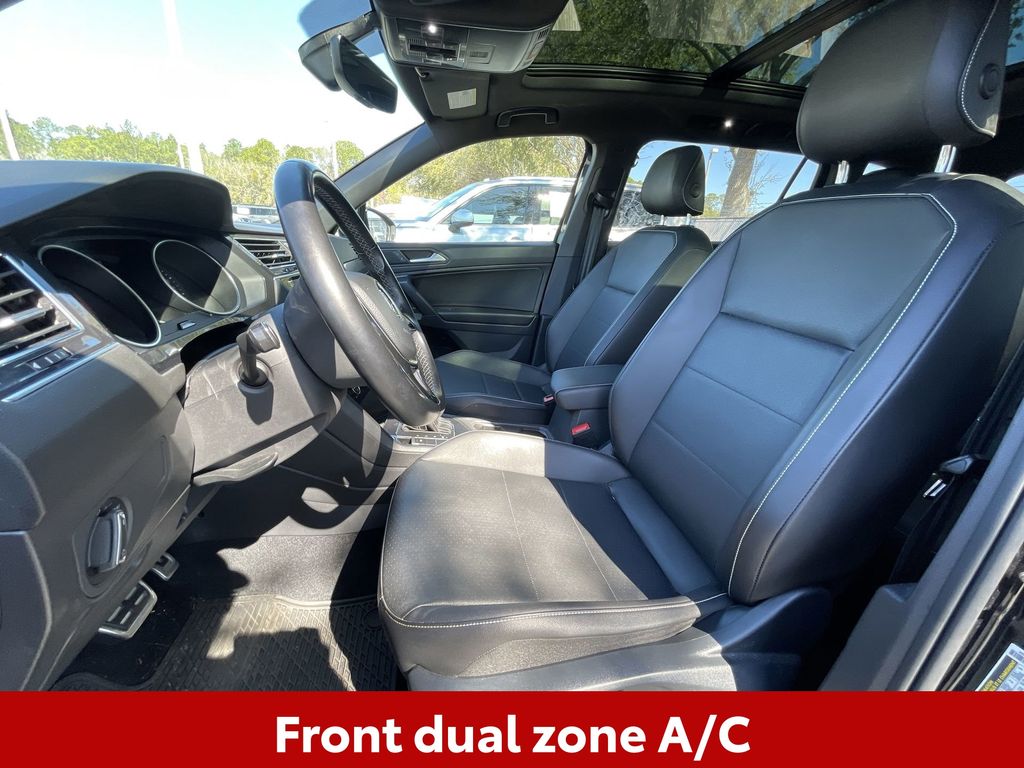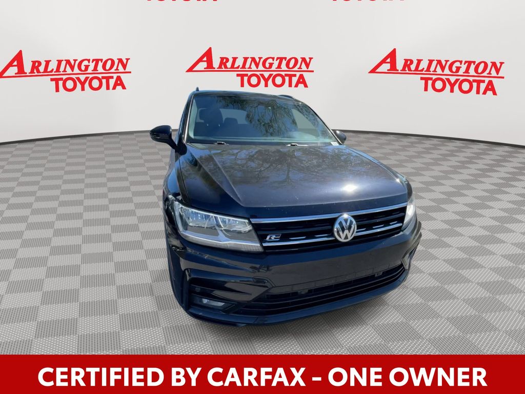 CERTIFIED BY CARFAX - ONE OWNER, BACKUP CAMERA, BLUETOOTH HANDS FREE, POWER SEATS, LOCAL TRADE IN, PANORAMIC MOONROOF, PUSH BUTTON START, CRUISE CONTROL, NON SMOKER, Tiguan 2.0T SE R-Line Black, 4D Sport Utility, 2.0L TSI DOHC, 8-Speed Automatic with Tiptronic, FWD, Deep Black Pearl, Titan Black w/Perforated V-Tex Leatherette Seating Surfaces, ABS brakes, Electronic Stability Control, Four wheel independent suspension, Front dual zone A/C, Fully automatic headlights, Low tire pressure warning, Steering wheel mounted audio controls, 3.33 Axle Ratio, 3rd row seats: bench, 4-Wheel Disc Brakes, 4-Wheel Independent Suspension, 6 Speakers, Air Conditioning, Alloy wheels, AM/FM radio: SiriusXM with 360L, Automatic temperature control, Brake assist, Bumpers: body-color, Cargo Area Retractable Privacy Cover, Compass, Delay-off headlights, Driver door bin, Driver vanity mirror, Dual front impact airbags, Dual front side impact airbags, Emergency communication system: VW Car-Net services (capabilities require enrollment or subscription), Exterior Parking Camera Rear, Forward collision: FCW w/Autonomous Emergency Braking mitigation, Frameless Auto-Dimming Rearview Mirror, Front anti-roll bar, Front Bucket Seats, Front Center Armrest, Front fog lights, Front reading lights, Heated door mirrors, Heated Front Comfort Seats, Heated front seats, Illuminated entry, Leather Shift Knob, Leather steering wheel, Occupant sensing airbag, Outside temperature display, Overhead airbag, Overhead console, Panic alarm, Passenger door bin, Passenger vanity mirror, Perforated V-Tex Leatherette Seating Surfaces, Power door mirrors, Power driver seat, Power moonroof, Power steering, Power windows, Radio data system, Radio: MIB3 Composition Media AM/FM/HD, Rear anti-roll bar, Rear reading lights, Rear seat center armrest, Rear window defroster, Rear window wiper, Remote keyless entry, Roof rack: rails only, Security system, Speed control, Speed-sensing steering, Split folding rear seat, Spoiler, Sport steering wheel, Tachometer, Telescoping steering wheel, Tilt steering wheel, Traction control, Trip computer, Turn signal indicator mirrors, Variably intermittent wipers, Wheels: 20" Machined Black Alloy, Tiguan 2.0T SE R-Line Black, 4D Sport Utility, 2.0L TSI DOHC, 8-Speed Automatic with Tiptronic, FWD, Deep Black Pearl, Titan Black w/Perforated V-Tex Leatherette Seating Surfaces, ABS brakes, Electronic Stability Control, Four wheel independent suspension, Front dual zone A/C, Fully automatic headlights, Low tire pressure warning, Steering wheel mounted audio controls.