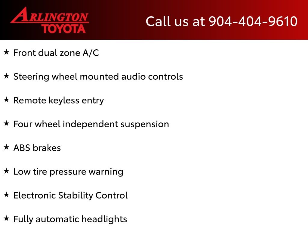 CALL FOR AVAILABILITY AND EXTRA OPTIONS ARLINGTON TOYOTA 904-721-3000.