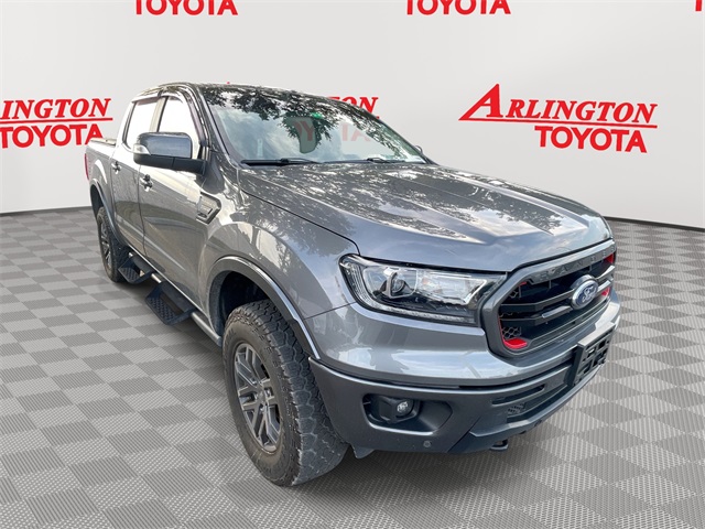 Odometer is 9544 miles below market average!BACKUP CAMERA, BLUETOOTH HANDS FREE, ANDROID AUTO, APPLE CARPLAY, POWER SEATS, LOW MILES, RUNNING BOARDS, TOW PACKAGE, PUSH BUTTON START, CRUISE CONTROL, NON SMOKER, Ranger Lariat 4X4, 4D Crew Cab, EcoBoost 2.3L I4 GTDi DOHC Turbocharged VCT, 10-Speed Automatic, 4WD, Carbonized Gray Metallic, Ebony w/Front Heated Leather-Trimmed Bucket Seats, Front dual zone A/C, Steering wheel mounted audio controls, 2 4.2 Colored Productivity Screens, 3.73 Axle Ratio, 4-Wheel Disc Brakes, 6 Speakers, ABS brakes, Adaptive Cruise Control, Air Conditioning, Alloy wheels, AM/FM radio: SiriusXM, AM/FM Stereo, Auto High-beam Headlights, Auto Start-Stop Technology, Auto-dimming Rear-View mirror, Automatic temperature control, Black Interior Accents, Black Off-Road Hoop Steps, Blk Mesh Grille w/Magnetic Pntd Surround/Blk Bars, Brake assist, Bumpers: body-color, Class IV Trailer Hitch Receiver, Compass, Delay-off headlights, Driver door bin, Driver vanity mirror, Dual front impact airbags, Dual front side impact airbags, Electronic Stability Control, Electronic-Locking Rear Differential, Emergency communication system: SYNC 3 911 Assist, Equipment Group 501A High, Exterior Parking Camera Rear, Forward Sensing System, Fr Lthr-Trimmed Bucket Seats w/Miko Suede Inserts, Front anti-roll bar, Front Bucket Seats, Front Center Armrest, Front fog lights, Front Heated Leather-Trimmed Bucket Seats, Front reading lights, Front wheel independent suspension, Fully automatic headlights, Heated door mirrors, Heated front seats, Illuminated entry, Leather Shift Knob, Leather steering wheel, Low tire pressure warning, Magnetic Painted Fender Vent Surround, Magnetic Painted Front & Rear Bumper, Magnetic Painted Wheel Arch Flare, Navigation, Occupant sensing airbag, Off-Road Screen in Cluster, Off-Road Tuned Suspension w/FOX Dampers, Outside temperature display, Overhead airbag, Overhead console, Panic alarm, Passenger door bin, Passenger vanity mirror, Power door mirrors, Power driver seat, Power passenger seat, Power steering, Power windows, Radio: B&O Sound System by Bang & Olufsen, Rain-Sensing Wipers, Rear Parking Sensors, Rear reading lights, Rear seat center armrest, Rear step bumper, Rear Tow Hooks, Rear window defroster, Remote keyless entry, Remote Start, Security system, SiriusXM Satellite Radio, Speed control, Speed-sensing steering, SYNC 3, SYNC 3/Apple CarPlay/Android Auto, Technology Package, Telescoping steering wheel, Terrain Management System, Tilt steering wheel, Traction control, Trail Control, Trailer Tow Package, Tray Style Floor Liner w/Carpet Floor Mats, Tremor Box Decal, Tremor Off-Road Package, Trip computer, Turn signal indicator mirrors, Universal Garage Door Opener (UGDO), Upfitter Switches (6), Variably intermittent wipers, Voltmeter, Wheels: 17" Magnetic Painted Aluminum, Wheels: 18" Machined Alum w/Stealth Gray Pockets, Ranger Lariat 4X4, 4D Crew Cab, EcoBoost 2.3L I4 GTDi DOHC Turbocharged VCT, 10-Speed Automatic, 4WD, Carbonized Gray Metallic, Ebony w/Front Heated Leather-Trimmed Bucket Seats, Front dual zone A/C, Steering wheel mounted audio controls.CALL FOR AVAILABILITY AND EXTRA OPTIONS ARLINGTON TOYOTA 904-721-3000.