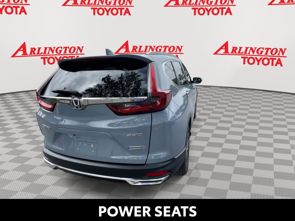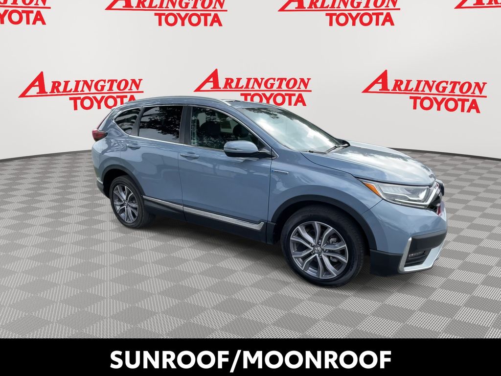 BACKUP CAMERA, BLUETOOTH HANDS FREE, ANDROID AUTO, APPLE CARPLAY, AWD/ALLWHEEL DRIVE, POWER SEATS, POWER LIFTGATE, SUNROOF/MOONROOF, PUSH BUTTON START, LANE DEPARTURE, ADAPTIVE CRUISE CONTROL, NON SMOKER, CR-V Hybrid Touring AWD, 4D Sport Utility, 2.0L I4 DOHC 16V, eCVT, AWD, Sonic Gray Pearl, Black w/Leather Seat Trim, ABS brakes, Electronic Stability Control, Four wheel independent suspension, Front dual zone A/C, Low tire pressure warning, Remote keyless entry, Steering wheel mounted audio controls, 3.89 Axle Ratio, 4-Wheel Disc Brakes, 9 Speakers, Adaptive Cruise Control: Adaptive Cruise Control (ACC) with Low-Speed Follow, Air Conditioning, Alloy wheels, AM/FM radio: SiriusXM, Apple CarPlay/Android Auto, Auto High-beam Headlights, Auto-dimming Rear-View mirror, Automatic temperature control, Blind Spot Information (BSI) System warning, Brake assist, Bumpers: body-color, Compass, Delay-off headlights, Driver door bin, Driver vanity mirror, Dual front impact airbags, Dual front side impact airbags, Exterior Parking Camera Rear, Forward collision: Collision Mitigation Braking System (CMBS) + FCW mitigation, Front anti-roll bar, Front Bucket Seats, Front Center Armrest, Front fog lights, Front reading lights, Garage door transmitter: HomeLink, Heated door mirrors, Heated Front Bucket Seats, Heated front seats, Heated steering wheel, Illuminated entry, Leather Seat Trim, Memory seat, Navigation system: Honda Satellite-Linked Navigation System, Occupant sensing airbag, Outside temperature display, Overhead airbag, Overhead console, Panic alarm, Passenger door bin, Passenger vanity mirror, Power door mirrors, Power driver seat, Power Liftgate, Power moonroof, Power passenger seat, Power steering, Power windows, Radio data system, Radio: 330-Watt AM/FM/HD/SiriusXM Prem Audio Sys, Rain sensing wipers, Rear anti-roll bar, Rear seat center armrest, Rear window defroster, Rear window wiper, Roof rack: rails only, Security system, Speed control, Speed-sensing steering, Speed-Sensitive Wipers, Split folding rear seat, Spoiler, Telescoping steering wheel, Tilt steering wheel, Traction control, Trip computer, Turn signal indicator mirrors, Variably intermittent wipers, Wheels: 19" Machine-Finished Alloy w/Gray Inserts, CR-V Hybrid Touring AWD, 4D Sport Utility, 2.0L I4 DOHC 16V, eCVT, AWD, Sonic Gray Pearl, Black w/Leather Seat Trim, ABS brakes, Electronic Stability Control, Four wheel independent suspension, Front dual zone A/C, Low tire pressure warning, Remote keyless entry, Steering wheel mounted audio controls.