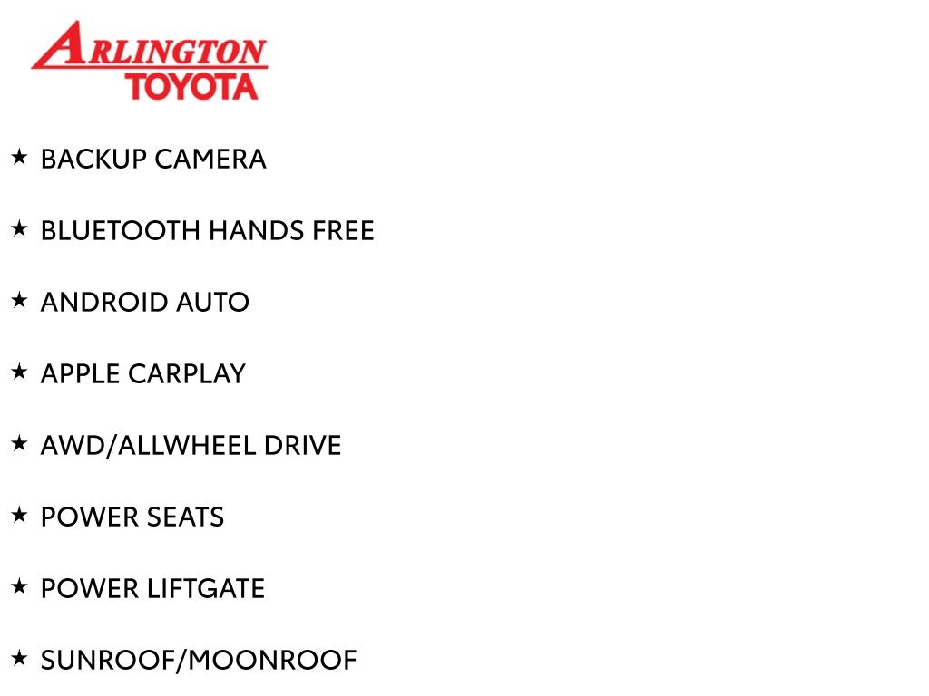 Prices do not include tax, tag, title, a pre-delivery service fee* of $894.00, an electronic registration filing fee* of $199.00 (*these charges represent costs and profits to the dealer for items such as inspecting, cleaning, and preparing documents related to the sale), and an Arlington Toyota Total Value Package of $1,889.00 (*these charges represent costs and profits to the dealer for items such as inspecting, cleaning, and preparing documents related to the sale). The final price is also subject to repair order reconditioning costs. Any price does not include dealer-installed accessories. All offers are mutually exclusive. All vehicles are subject to prior sale. See dealer for complete details.