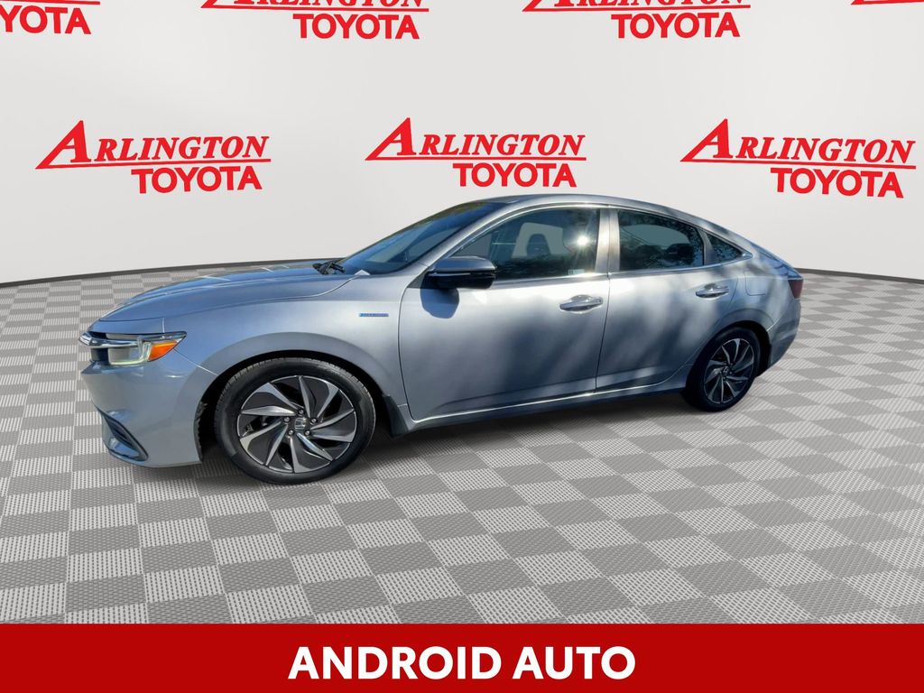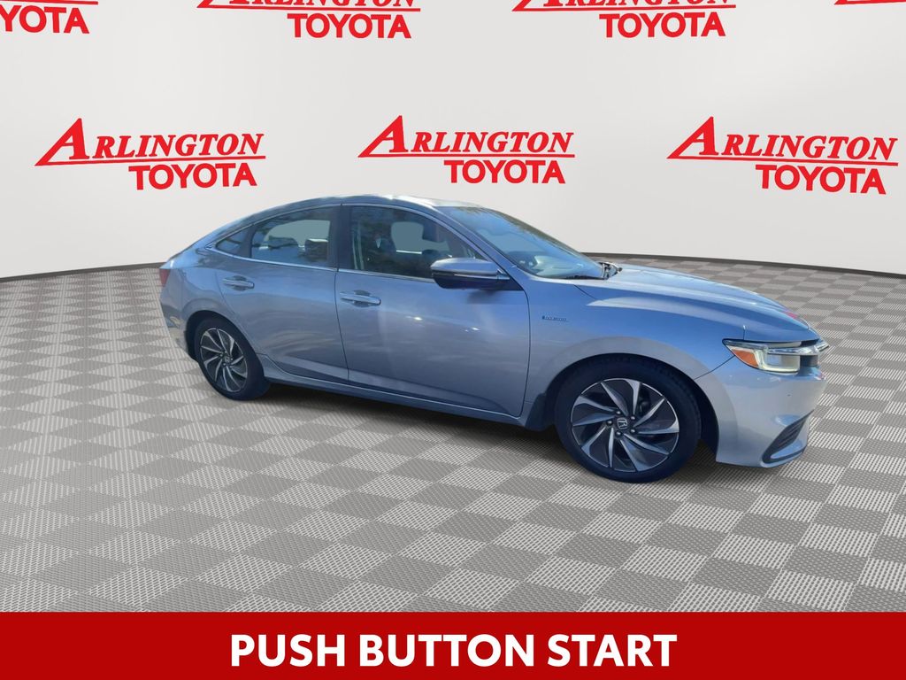 BACKUP CAMERA, BLUETOOTH HANDS FREE, ANDROID AUTO, APPLE CARPLAY, POWER SEATS, LOCAL TRADE IN, SUNROOF/MOONROOF, PUSH BUTTON START, CRUISE CONTROL, NON SMOKER, Insight Touring, 4D Sedan, 1.5L I4 SMPI DOHC 16V LEV3-SULEV30, eCVT, FWD, Lunar Silver Metallic, Black w/Leather Seat Trim, ABS brakes, Forward collision: Collision Mitigation Braking System (CMBS) + FCW mitigation, Four wheel independent suspension, Front dual zone A/C, Fully automatic headlights, Low tire pressure warning, Remote keyless entry, Steering wheel mounted audio controls, Turn signal indicator mirrors, 10 Speakers, 17" Aluminum Alloy Wheels, 4-Wheel Disc Brakes, Adaptive Cruise Control: Adaptive Cruise Control (ACC) with Low-Speed Follow, Air Conditioning, Alloy wheels, AM/FM radio: SiriusXM, Apple CarPlay/Android Auto, Auto High-beam Headlights, Auto-dimming Rear-View mirror, Automatic temperature control, Blind Spot Information (BSI) System warning, Brake assist, Bumpers: body-color, Compass, Delay-off headlights, Driver door bin, Driver vanity mirror, Dual front impact airbags, Dual front side impact airbags, Electronic Stability Control, Exterior Parking Camera Rear, Front anti-roll bar, Front Bucket Seats, Front Center Armrest, Front fog lights, Front reading lights, Garage door transmitter: HomeLink, Heated door mirrors, Heated Front Bucket Seats, Heated front seats, Illuminated entry, Lane departure: Lane Keeping Assist System (LKAS) active, Leather Seat Trim, Leather steering wheel, Navigation system: Honda Satellite-Linked Navigation System, Occupant sensing airbag, Outside temperature display, Overhead airbag, Overhead console, Panic alarm, Passenger door bin, Passenger vanity mirror, Power door mirrors, Power driver seat, Power moonroof, Power passenger seat, Power steering, Power windows, Radio data system, Radio: 450-Watt Premium Audio System w/10 Speakers, Rain sensing wipers, Rear anti-roll bar, Rear seat center armrest, Rear window defroster, Security system, Speed control, Speed-sensing steering, Speed-Sensitive Wipers, Split folding rear seat, Telescoping steering wheel, Tilt steering wheel, Traction control, Trip computer, Variably intermittent wipers, Insight Touring, 4D Sedan, 1.5L I4 SMPI DOHC 16V LEV3-SULEV30, eCVT, FWD, Lunar Silver Metallic, Black w/Leather Seat Trim, ABS brakes, Forward collision: Collision Mitigation Braking System (CMBS) + FCW mitigation, Four wheel independent suspension, Front dual zone A/C, Fully automatic headlights, Low tire pressure warning, Remote keyless entry, Steering wheel mounted audio controls, Turn signal indicator mirrors.