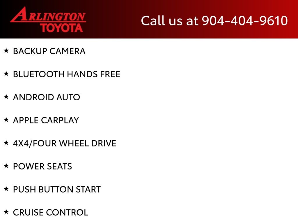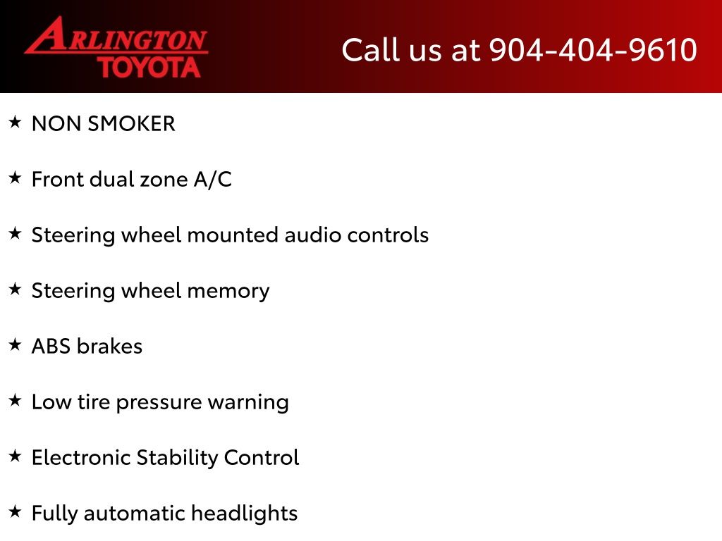 CALL FOR AVAILABILITY AND EXTRA OPTIONS ARLINGTON TOYOTA 904-721-3000.