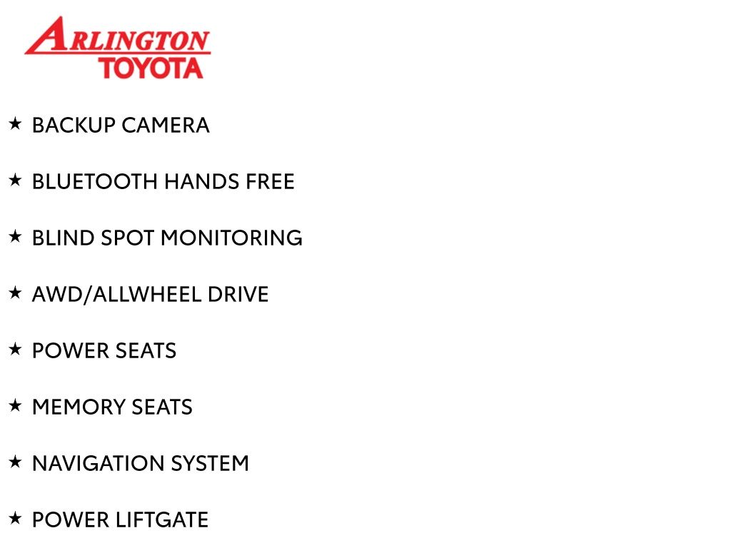 Prices do not include tax, tag, or title. Arlington Price includes a pre-delivery service fee* of $894.00, an electronic registration filing fee* of $199.00 (*these charges represent costs and profits to the dealer for items such as inspecting, cleaning, and preparing documents related to the sale), and an Arlington Toyota Total Value Package of $1,889.00. All offers are mutually exclusive. All vehicles are subject to prior sale. See dealer for complete details. While every reasonable effort is made to ensure the accuracy of this information, we are not responsible for any errors or omissions contained on these pages.