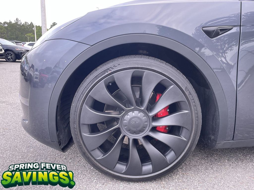 - 21 x 9.5-inch front and 21 x 10.5-inch rear gray aluminum wheels