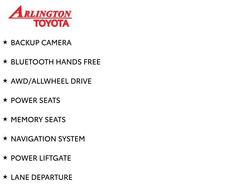 Prices do not include tax, tag, title, a pre-delivery service fee* of $894.00, an electronic registration filing fee* of $199.00 (*these charges represent costs and profits to the dealer for items such as inspecting, cleaning, and preparing documents related to the sale), and an Arlington Toyota Total Value Package of $1,889.00 (*these charges represent costs and profits to the dealer for items such as inspecting, cleaning, and preparing documents related to the sale). The final price is also subject to repair order reconditioning costs. Any price does not include dealer-installed accessories. All offers are mutually exclusive. All vehicles are subject to prior sale. See dealer for complete details.