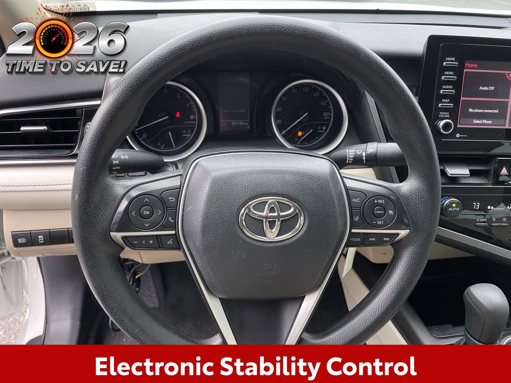 BACKUP CAMERA, BLUETOOTH HANDS FREE, POWER SEATS, LANE DEPARTURE, ADAPTIVE CRUISE CONTROL, NON SMOKER, Camry LE, 4D Sedan, 2.5L I4 DOHC 16V, 8-Speed Automatic, FWD, White, Macadamia w/Fabric Seat Trim, ABS brakes, Electronic Stability Control, Four wheel independent suspension, Front dual zone A/C, Fully automatic headlights, Low tire pressure warning, Remote keyless entry, Steering wheel mounted audio controls, 4-Wheel Disc Brakes, 6 Speakers, 7.5J x 17" Alloy Wheels, Air Conditioning, Alloy wheels, AM/FM radio: SiriusXM, Apple CarPlay/Android Auto, Auto High-beam Headlights, Automatic temperature control, Brake assist, Bumpers: body-color, Delay-off headlights, Driver door bin, Driver vanity mirror, Dual front impact airbags, Dual front side impact airbags, Exterior Parking Camera Rear, Fabric Seat Trim, Front anti-roll bar, Front Bucket Seats, Front Center Armrest, Front reading lights, Illuminated entry, Knee airbag, Occupant sensing airbag, Outside temperature display, Overhead airbag, Overhead console, Panic alarm, Passenger door bin, Passenger vanity mirror, Power door mirrors, Power driver seat, Power steering, Power windows, Radio data system, Radio: AM/FM Audio System, Rear anti-roll bar, Rear seat center armrest, Rear side impact airbag, Rear window defroster, Security system, Speed control, Speed-sensing steering, Split folding rear seat, Tachometer, Telescoping steering wheel, Tilt steering wheel, Traction control, Trip computer, Variably intermittent wipers, Camry LE, 4D Sedan, 2.5L I4 DOHC 16V, 8-Speed Automatic, FWD, White, Macadamia w/Fabric Seat Trim, ABS brakes, Electronic Stability Control, Four wheel independent suspension, Front dual zone A/C, Fully automatic headlights, Low tire pressure warning, Remote keyless entry, Steering wheel mounted audio controls.