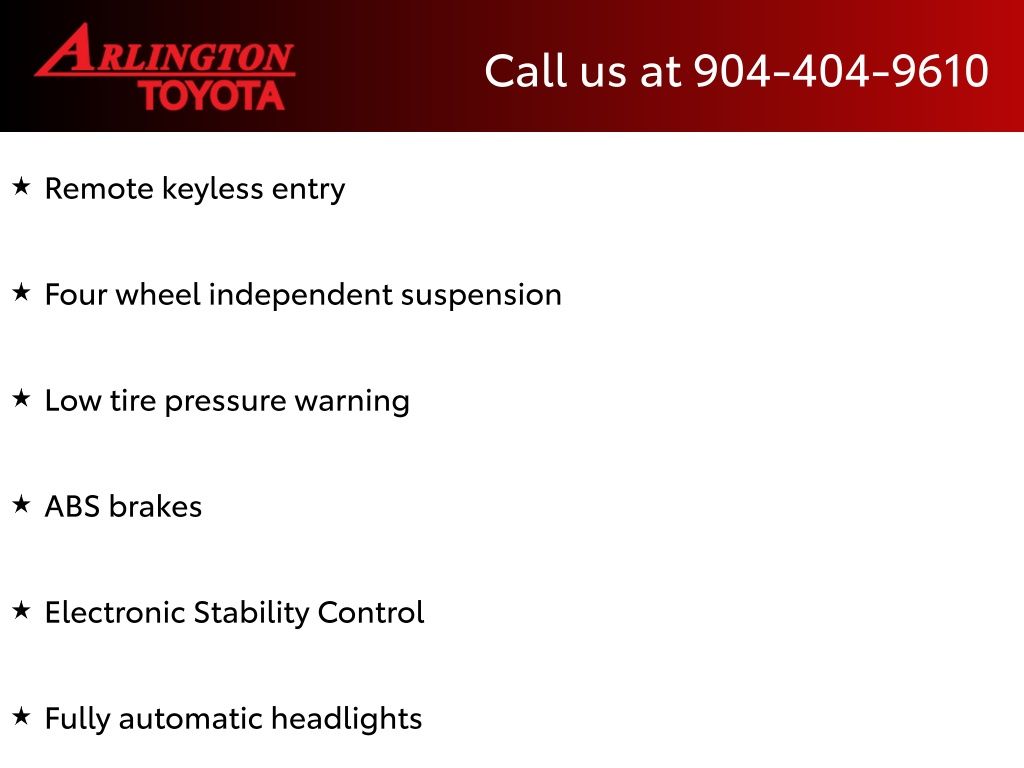 CALL FOR AVAILABILITY AND EXTRA OPTIONS ARLINGTON TOYOTA 904-721-3000.