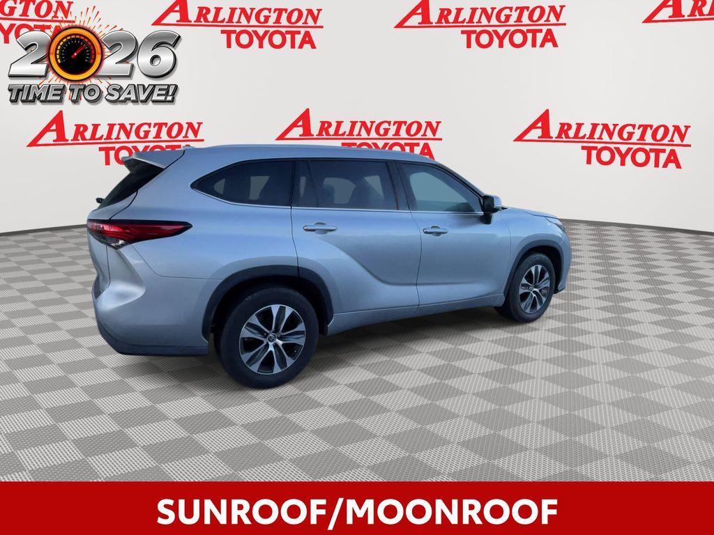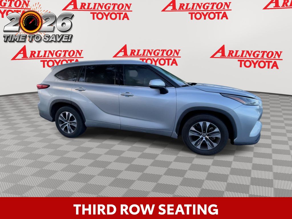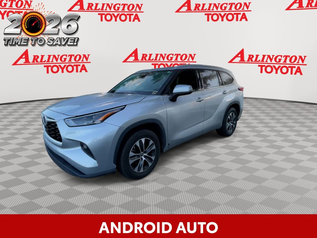BACKUP CAMERA, BLUETOOTH HANDS FREE, ANDROID AUTO, APPLE CARPLAY, POWER SEATS, POWER LIFTGATE, SUNROOF/MOONROOF, THIRD ROW SEATING, PUSH BUTTON START, LANE DEPARTURE, ADAPTIVE CRUISE CONTROL, NON SMOKER, Highlander XLE, 4D Sport Utility, 3.5L V6 DOHC, 8-Speed Automatic, FWD, Celestial Silver Metallic, Black w/SofTex Seat Trim, ABS brakes, Electronic Stability Control, Four wheel independent suspension, Front dual zone A/C, Fully automatic headlights, Low tire pressure warning, Remote keyless entry, Speed-sensing steering, Steering wheel mounted audio controls, Turn signal indicator mirrors, 3.003 Axle Ratio, 3rd row seats: split-bench, 4-Wheel Disc Brakes, 6 Speakers, Air Conditioning, Alloy wheels, AM/FM radio: SiriusXM, Apple CarPlay/Android Auto, Auto High-beam Headlights, Auto-dimming Rear-View mirror, Automatic temperature control, Brake assist, Bumpers: body-color, Delay-off headlights, Driver door bin, Driver vanity mirror, Dual front impact airbags, Dual front side impact airbags, Exterior Parking Camera Rear, Front anti-roll bar, Front Bucket Seats, Front Center Armrest, Front fog lights, Front reading lights, Garage door transmitter: HomeLink, Heated door mirrors, Heated Front Bucket Seats, Heated front seats, Illuminated entry, Knee airbag, Leather Shift Knob, Occupant sensing airbag, Outside temperature display, Overhead airbag, Overhead console, Panic alarm, Passenger door bin, Passenger vanity mirror, Power door mirrors, Power driver seat, Power Liftgate, Power moonroof, Power passenger seat, Power steering, Power windows, Radio: Audio Plus, Rear air conditioning, Rear anti-roll bar, Rear reading lights, Rear window defroster, Rear window wiper, Reclining 3rd row seat, Roof rack: rails only, Security system, SofTex Seat Trim, Speed control, Split folding rear seat, Spoiler, Tachometer, Telescoping steering wheel, Tilt steering wheel, Traction control, Trip computer, Variably intermittent wipers, Wheels: 18" Machined-Finish Alloy, Highlander XLE, 4D Sport Utility, 3.5L V6 DOHC, 8-Speed Automatic, FWD, Celestial Silver Metallic, Black w/SofTex Seat Trim, ABS brakes, Electronic Stability Control, Four wheel independent suspension, Front dual zone A/C, Fully automatic headlights, Low tire pressure warning, Remote keyless entry, Speed-sensing steering, Steering wheel mounted audio controls, Turn signal indicator mirrors.