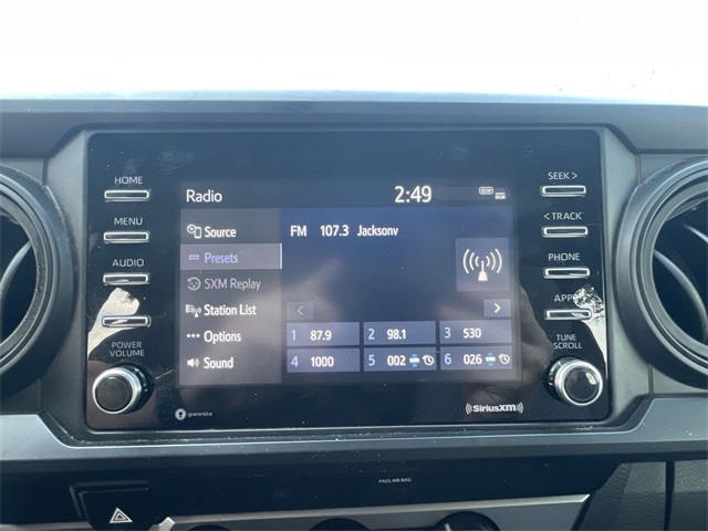 CERTIFIED BY CARFAX - ONE OWNER, REMAINDER OF FACTORY WARRANTY STILL APPLIES, BACKUP CAMERA, BLUETOOTH HANDS FREE, ANDROID AUTO, APPLE CARPLAY, BED LINER, ADAPTIVE CRUISE CONTROL, NON SMOKER, Tacoma SR, 4D Access Cab, 2.7L SMPI DOHC, 6-Speed Automatic, RWD, White, Cement Cloth, ABS brakes, Electronic Stability Control, Low tire pressure warning, Steering wheel mounted audio controls, 6 Speakers, Air Conditioning, AM/FM radio: SiriusXM, AM/FM Stereo, Anti-whiplash front head restraints, Apple CarPlay/Android Auto, Auto High-beam Headlights, Axle Ratio: 4.30, Black Rear Bumper, Brake assist, Bumpers: body-color, Daytime Running Lamps, Driver door bin, Dual front impact airbags, Dual front side impact airbags, Exterior Parking Camera Rear, Fabric Seat Trim (FA), Fabric Seat Trim (FB), Front anti-roll bar, Front Bucket Seats, Front Center Armrest, Front reading lights, Front Seats, Front wheel independent suspension, Illuminated entry, Intermittent Wiper Delete, Knee airbag, Occupant sensing airbag, Outside temperature display, Overhead airbag, Overhead console, Passenger cancellable airbag, Passenger door bin, Power door mirrors, Power steering, Power windows, Radio: AM/FM Audio System, Rear Cupholder Delete, Rear Headrests Delete, Rear Seat Belts Delete, Rear step bumper, Speed control, Speed-sensing steering, Tachometer, Telescoping steering wheel, Tilt steering wheel, Traction control, Utility Package, Variably intermittent wipers, Wheels: 16" x 7J Style Steel Disc, Tacoma SR, 4D Access Cab, 2.7L SMPI DOHC, 6-Speed Automatic, RWD, White, Cement Cloth, ABS brakes, Electronic Stability Control, Low tire pressure warning, Steering wheel mounted audio controls.CALL FOR AVAILABILITY AND EXTRA OPTIONS ARLINGTON TOYOTA 904-721-3000.