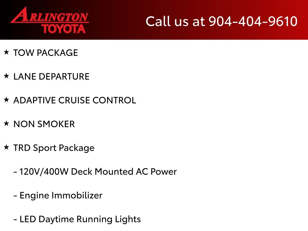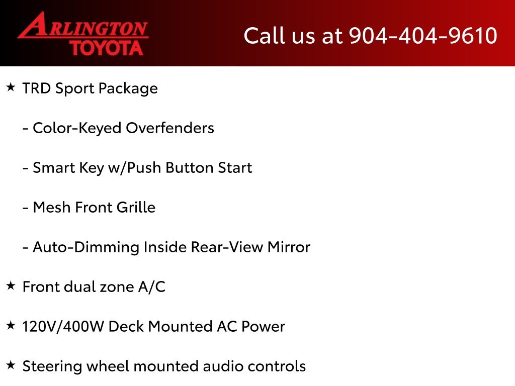 CALL FOR AVAILABILITY AND EXTRA OPTIONS ARLINGTON TOYOTA 904-721-3000.