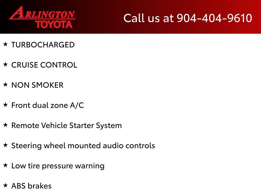 CALL FOR AVAILABILITY AND EXTRA OPTIONS ARLINGTON TOYOTA 904-721-3000.