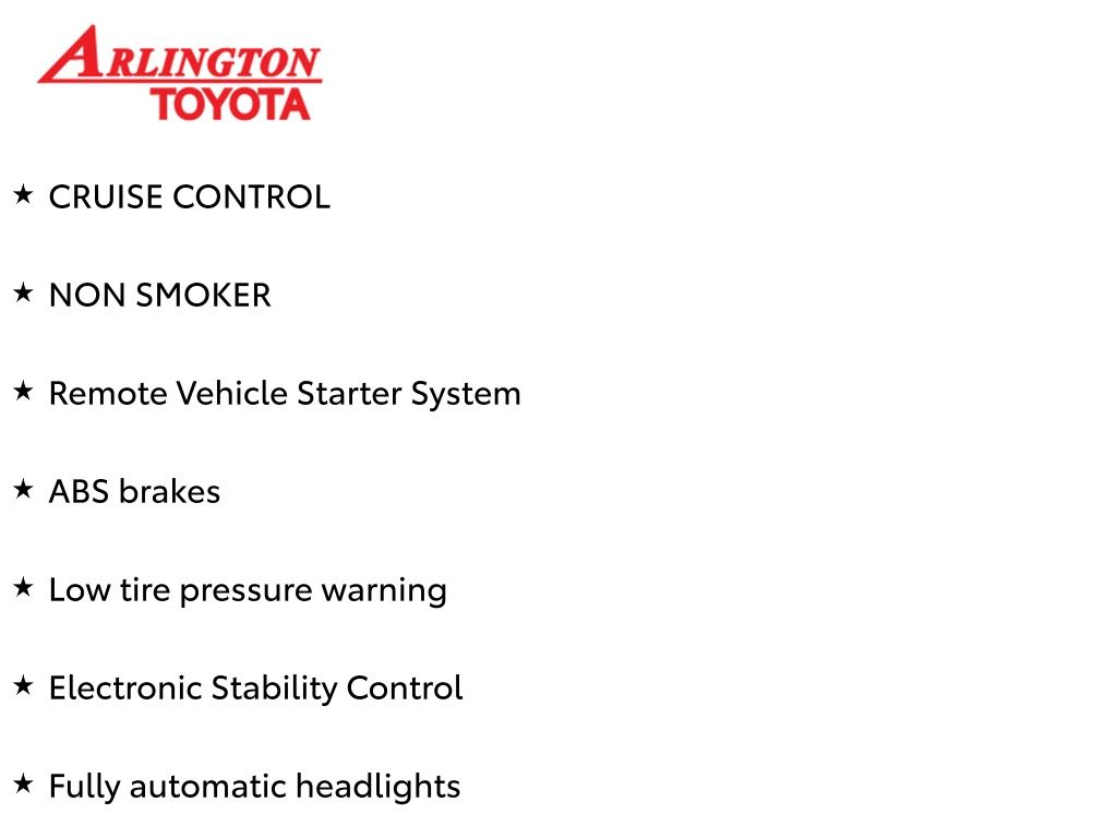 Prices do not include tax, tag, title, a pre-delivery service fee* of $894.00, an electronic registration filing fee* of $199.00 (*these charges represent costs and profits to the dealer for items such as inspecting, cleaning, and preparing documents related to the sale), and an Arlington Toyota Total Value Package of $1,889.00 (*these charges represent costs and profits to the dealer for items such as inspecting, cleaning, and preparing documents related to the sale). The final price is also subject to repair order reconditioning costs. Any price does not include dealer-installed accessories. All offers are mutually exclusive. All vehicles are subject to prior sale. See dealer for complete details.