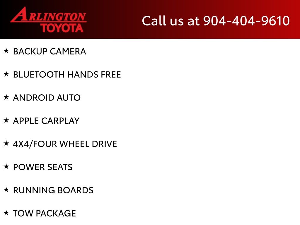CALL FOR AVAILABILITY AND EXTRA OPTIONS ARLINGTON TOYOTA 904-721-3000.