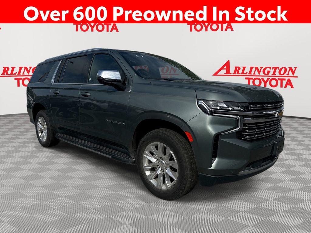 CERTIFIED BY CARFAX - ONE OWNER, REMAINDER OF FACTORY WARRANTY STILL APPLIES, BACKUP CAMERA, BLUETOOTH HANDS FREE, ANDROID AUTO, APPLE CARPLAY, 4X4/FOUR WHEEL DRIVE, POWER SEATS, MEMORY SEATS, THIRD ROW SEATING, TOW PACKAGE, PUSH BUTTON START, CRUISE CONTROL, NON SMOKER, Suburban Premier 4X4, 4D Sport Utility, EcoTec3 5.3L V8, 10-Speed Automatic with Overdrive, 4WD, Silver Sage Metallic, Jet Black w/Leather-Appointed Seating, ABS brakes, Electronic Stability Control, Fully automatic headlights, Low tire pressure warning, Steering wheel memory, Steering wheel mounted audio controls, 10 Speakers, 1st & 2nd Row Color-Keyed Carpeted Floor Mats, 2-Speed Active Electronic AutoTrac Transfer Case, 20" x 9" Polished Aluminum Wheels, 3.23 Rear Axle Ratio, 3rd Row 60/40 Power-Folding Split-Bench, 3rd row seats: split-bench, 4-Wheel Disc Brakes, Adaptive suspension, Air Conditioning, Alloy wheels, AM/FM radio: SiriusXM with 360L, Apple CarPlay/Android Auto, Auto High-beam Headlights, Auto-dimming door mirrors, Auto-Dimming Inside Rear-View Mirror, Auto-dimming Rear-View mirror, Auto-leveling suspension, Automatic temperature control, Bose 10-Speaker Surround w/CenterPoint, Brake assist, Bright Front & Rear Door Sill Plates, Bumpers: body-color, Chrome Door Handles w/Body-Color Strip, Chrome Mirror Caps, Color-Keyed Carpeting Floor Covering, Compass, Delay-off headlights, Deleted 3 Years of Remote Access, Driver & Front Outboard Passenger Airbags, Driver door bin, Driver vanity mirror, Dual Exhaust System, Dual front impact airbags, Dual front side impact airbags, Emergency communication system: OnStar and Chevrolet connected services capable, Enhanced Driver Information Center, Floor Console, Four wheel independent suspension, Front anti-roll bar, Front Bucket Seats, Front Center Armrest, Front dual zone A/C, Front reading lights, Garage door transmitter, Hands-Free Rear Power Programmable Liftgate, Heated & Ventilated Driver & Front Passenger Seats, Heated 2nd Row Outboard Seats, Heated door mirrors, Heated Driver & Front Passenger Seats, Heated front seats, Heated rear seats, Heated Steering Wheel, Heated steering wheel, Hill Descent Control, Illuminated entry, Infotainment Display, Lane Change Alert w/Side Blind Zone Alert, LED Daytime Running Lamps, License Plate Front Mounting Package, Magnetic Ride Control Suspension, Memory seat, Memory Settings, Navigation System, Occupant sensing airbag, Outside Heated Power-Adjustable Mirrors, Outside temperature display, Overhead airbag, Overhead console, Panic alarm, Passenger door bin, Passenger vanity mirror, Perforated Leather Seating Surfaces, Power door mirrors, Power driver seat, Power Liftgate, Power passenger seat, Power Release 2nd Row Bucket Seats, Power steering, Power Tilt & Telescopic Steering Column, Power windows, Preferred Equipment Group 1LZ, Premium audio system: Chevrolet Infotainment 3 Premium, Radio: Chevrolet Infotainment 3 Premium System, Rain sensing wipers, Rear air conditioning, Rear anti-roll bar, Rear Cross Traffic Alert, Rear reading lights, Rear window defroster, Rear window wiper, Remote keyless entry, Remote Start, Roof rack: rails only, Safety Alert Seat, Security system, SiriusXM Radio w/360L, Speed control, Speed-sensing steering, Split folding rear seat, Spoiler, Tachometer, Telescoping steering wheel, Tilt steering wheel, Traction control, Trip computer, Turn signal indicator mirrors, Universal Home Remote, Variably intermittent wipers, Ventilated front seats, Voltmeter, Wireless Charging, Wrapped Steering Wheel, Suburban Premier 4X4, 4D Sport Utility, EcoTec3 5.3L V8, 10-Speed Automatic with Overdrive, 4WD, Silver Sage Metallic, Jet Black w/Leather-Appointed Seating, ABS brakes, Electronic Stability Control, Fully automatic headlights, Low tire pressure warning, Steering wheel memory, Steering wheel mounted audio controls.