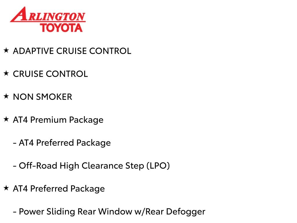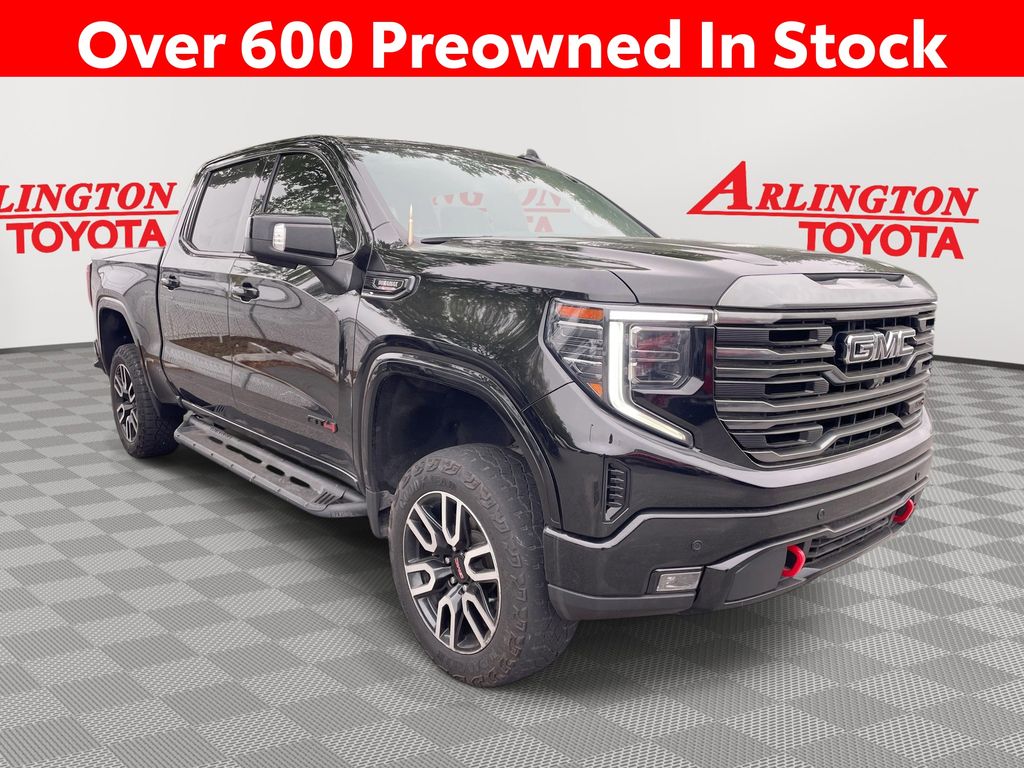 BACKUP CAMERA, BLUETOOTH HANDS FREE, ANDROID AUTO, APPLE CARPLAY, 4X4/FOUR WHEEL DRIVE, POWER SEATS, TOW PACKAGE, PUSH BUTTON START, ADAPTIVE CRUISE CONTROL, CRUISE CONTROL, NON SMOKER, Sierra 1500 AT4 4X4, 4D Crew Cab, 3.0L I6, 10-Speed Automatic, 4WD, Onyx Black, Jet Black With Kalahari Accents Leather, ABS brakes, AT4 Preferred Package, AT4 Premium Package, Electronic Stability Control, Front dual zone A/C, Fully automatic headlights, Low tire pressure warning, Off-Road High Clearance Step (LPO), Remote Vehicle Starter System, Steering wheel mounted audio controls, 10-Way Power Driver Seat Adjuster w/Lumbar, 10-Way Power Passenger Seat Adjuster w/Lumbar, 120-Volt Bed Mounted Power Outlet, 120-Volt Instrument Panel Power Outlet, 18" x 8.5" Machined Aluminum Wheels, 2 Charge/Data USB Ports Inside Center Console, 2 Type-C Charge-Only Rear USB Ports, 2 USB Ports, 220 Amp Alternator, 3.23 Rear Axle Ratio, 4-Wheel Disc Brakes, 7 Speakers, Adaptive Cruise Control, Air Conditioning, Alloy wheels, AM/FM radio, Apple CarPlay/Android Auto, Auto High-beam Headlights, Auto-dimming door mirrors, Auto-dimming Rear-View mirror, Auto-Locking Rear Differential, Automatic Emergency Braking, Automatic temperature control, Black Chrome Header & Grille Insert Bars, Black Sport Step (LPO), Block heater, Body Color Wheel Arch Moldings (LPO), Brake assist, Buckle to Drive, Bumpers: body-color, Color-Keyed Carpeting Floor Covering, Compass, Deep-Tinted Glass, Delay-off headlights, Driver door bin, Driver Memory, Driver vanity mirror, Dual front impact airbags, Dual front side impact airbags, Electric Rear-Window Defogger, Electrical Steering Column Lock, Engine Block Heater, Floor-Mounted Center Console, Following Distance Indicator, Forward Collision Alert, Front anti-roll bar, Front Bucket Seats, Front Center Armrest, Front fog lights, Front License Plate Kit, Front Pedestrian Braking, Front Prem Floor Liners w/Removable Carpet Insert, Front Rainsensing Wipers, Front reading lights, Front wheel independent suspension, GMC Connected Access Capable, HD Surround Vision, Heated 2nd Row Outboard Seats, Heated door mirrors, Heated Driver & Front Outboard Passenger Seating, Heated front seats, Heated rear seats, Heated steering wheel, Heavy-Duty Air Filter, Hill Descent Control, Hitch Guidance, Hitch Guidance w/Hitch View, Illuminated entry, In-Vehicle Trailering App, Integrated Trailer Brake Controller, IntelliBeam Automatic High Beam On/Off, Keyless Open & Start, Lane Keep Assist w/Lane Departure Warning, LED Cargo Area Lighting, Memory seat, Navigation System, Not Equipped w/Steering Column Lock, Occupant sensing airbag, Off-Road Suspension, OnStar & GMC Connected Services Capable, Outside temperature display, Overhead airbag, Overhead console, Panic alarm, Passenger door bin, Passenger vanity mirror, Perforated Front Leather Seat Trim, Perimeter Lighting, Power Door Locks, Power door mirrors, Power driver seat, Power Front Passenger Windows w/Express Up/Down, Power Front Windows w/Driver Express Up/Down, Power passenger seat, Power Rake & Telescoping Steering Column, Power Rear Windows w/Express Down, Power Sliding Rear Window w/Rear Defogger, Power steering, Power Sunroof, Power windows, Preferred Equipment Group 4SB, Premium audio system: GMC Infotainment System, Premium Bose 7-Speaker Sound System, Push Button Start, Radio data system, Radio: Premium GMC Infotainment Audio System, Rain sensing wipers, Rear Cross Traffic Braking, Rear Pedestrian Detection, Rear Prem Floor Liners w/Removable Carpet Insert, Rear reading lights, Rear seat center armrest, Rear step bumper, Rear Wheelhouse Liners, Rear window defroster, Red Recovery Hooks, Remote keyless entry, Safety Alert Seat, Security system, SiriusXM w/360L, Speed control, Speed-sensing steering, Split folding rear seat, Spray-On Pickup Bed Liner w/AT4 Logo, Steering Wheel Audio Controls, Tachometer, Telescoping steering wheel, Theft Deterren
