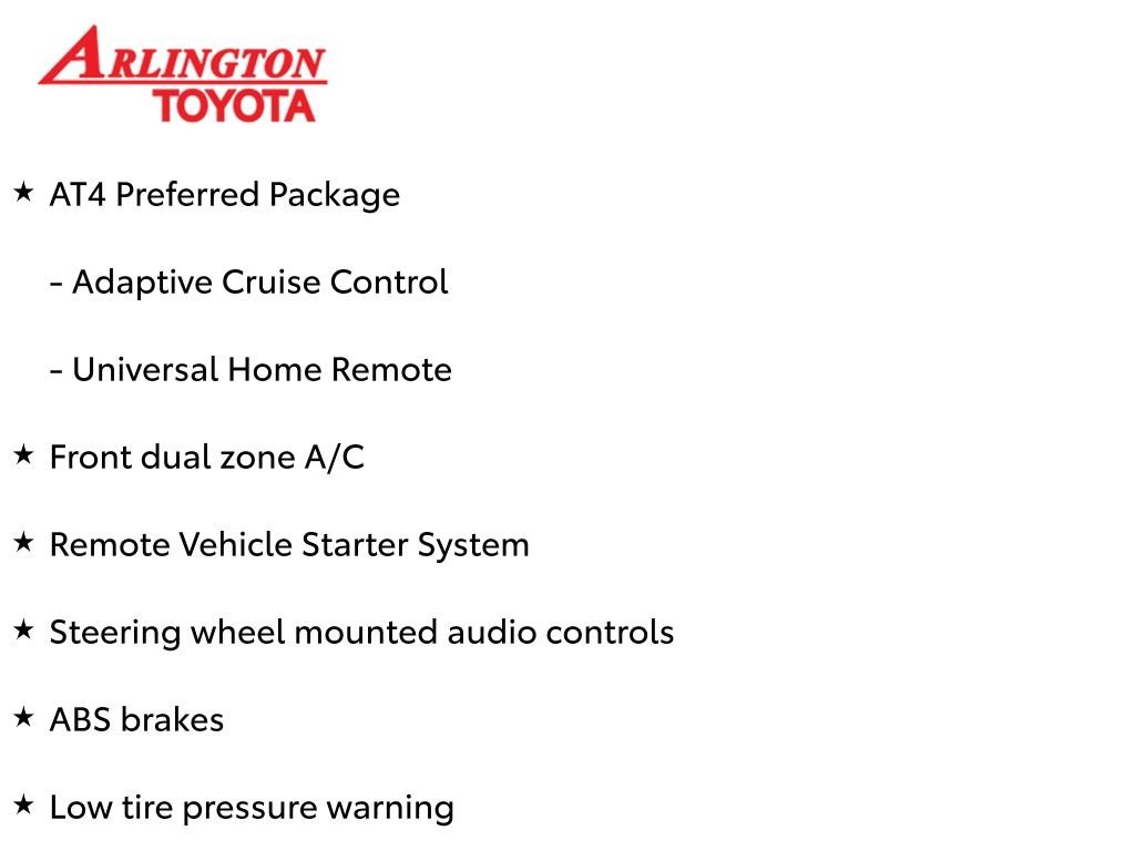 Prices do not include tax, tag, title, a pre-delivery service fee* of $894.00, an electronic registration filing fee* of $199.00 (*these charges represent costs and profits to the dealer for items such as inspecting, cleaning, and preparing documents related to the sale), and an Arlington Toyota Total Value Package of $1,889.00 (*these charges represent costs and profits to the dealer for items such as inspecting, cleaning, and preparing documents related to the sale). The final price is also subject to repair order reconditioning costs. Any price does not include dealer-installed accessories. All offers are mutually exclusive. All vehicles are subject to prior sale. See dealer for complete details.